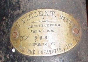 Built in Paris, in the E. Vincent Neveu constructeur factories in Rue Lafayette 219, on the basis of the 1881 English model SALVO QUAD by James Starley. In fact, the shape and parts are similar to each other.