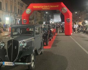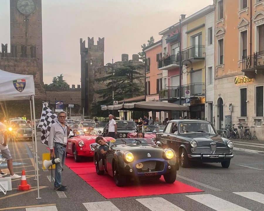 The Museo Nicolis was the evocative starting point for the 7th edition of the event featuring some of the most fascinating historic cars. On 12 August, the Museum’s large car park came alive as participants gathered with their cars, ready to experience an evening that would take them back in time. The 45 classic cars, all built before 1980 and with attention to every detail, thus set off for the center of Villafranca di Verona. With the historic Scaliger Castle from the 13th century as a backdrop, the cars paraded through the town’s streets, offering a unique spectacle. Among the marques present were Fiat, Healey, Porsche, Ferrari, Lancia, Triumph, Jaguar, and Mercedes, with iconic examples such as the Fiat 514 S and the Healey Silverstone, both participants in the recent Mille Miglia. The event concluded with the prize-giving of the crews, held by Culture Councillor Claudia Barbera. During the evening, a special prize was also awarded to the HCC Verona club, which was represented by Vice President Biasco Gianluigi and Councillor Vascon Sandro.