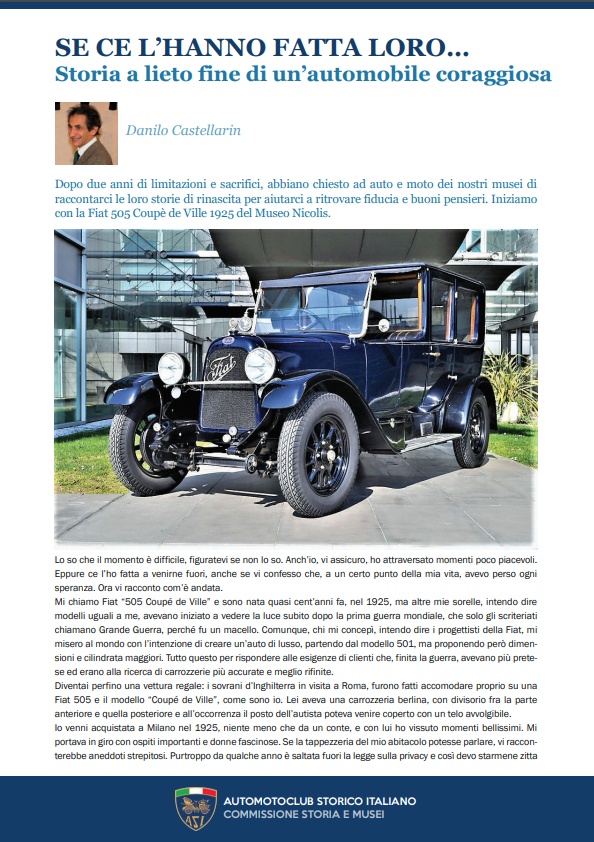 In this issue the Automotoclub Storico Italiano starts a new series called “If they have made it…”, where after two years of limitations and sacrifice cars and motorcycle from Italian museums tell their comeback stories.
