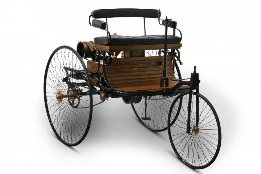 In 1885 Karl Benz (Germany 1844-1929), almost at the same time of the other German technician Gottlieb Daimler, built a tricycle with a petrol-driven engine which he tested himself, around Mannheim streets, where people were amazed by seeing it. The carriage “without horses” was about to be invented.
