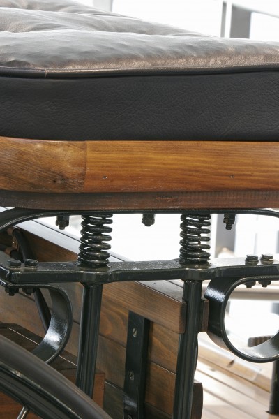 Benz didn’t only fit the engine to a carriage, replacing the horses, but he was the first who imagined a purpose-built chassis. The 1-speed “Velociped” working was very simple: the four-stroke horizontal monocylinder engine, without carter, lubricated by oilers and with ignition by Ruhmkorff coil and evaporation carburetor, transmitted the power to a secondary shaft with differential through a leather belt. The motion was transmitted to the wheels through the chains.
