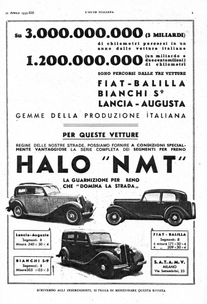 Introduced in 1934, the S9 was put on a market dominated by the Fiat 1500 and the Lancia Augusta, later replaced by the Lancia Aprilia.
