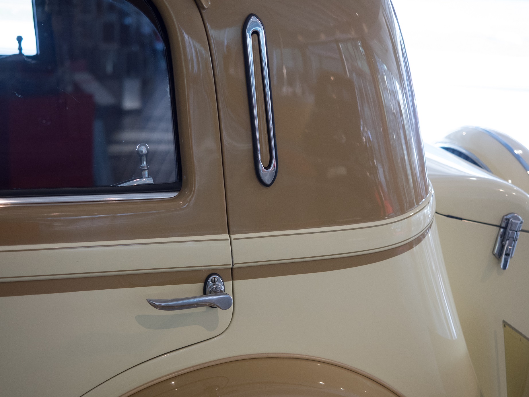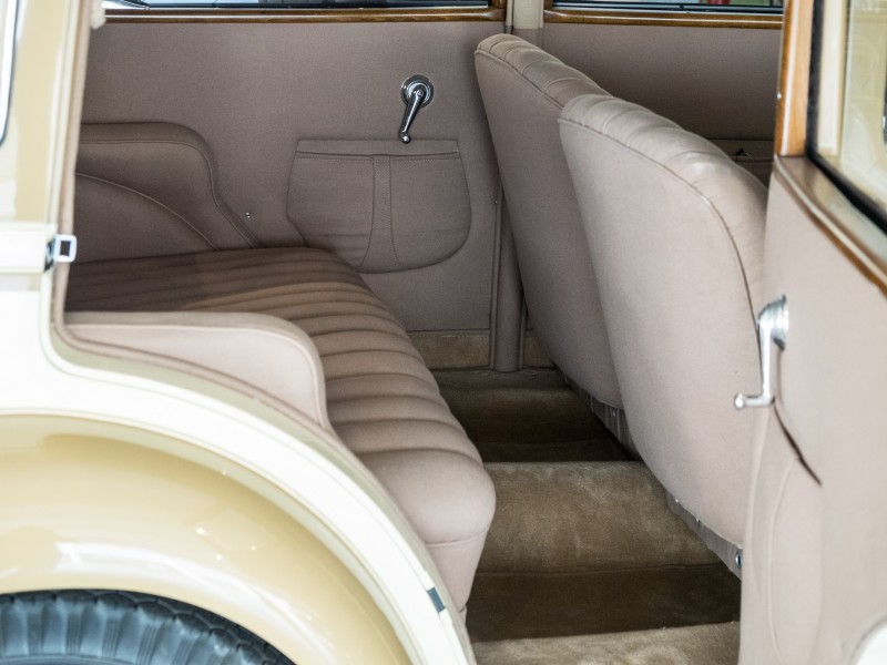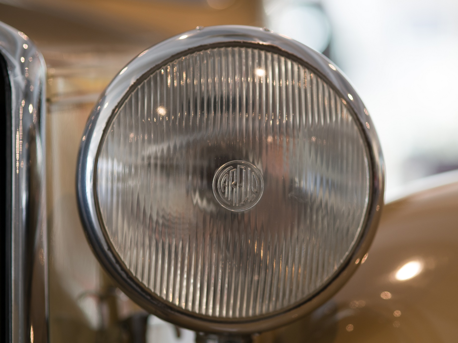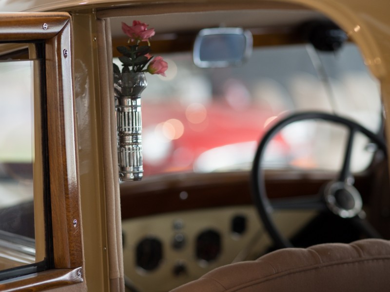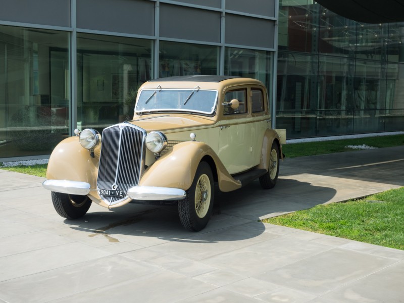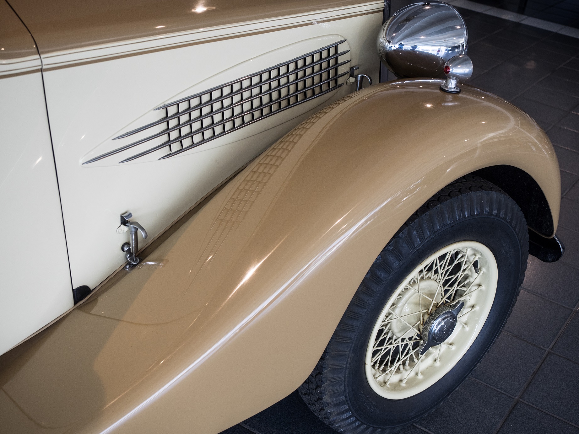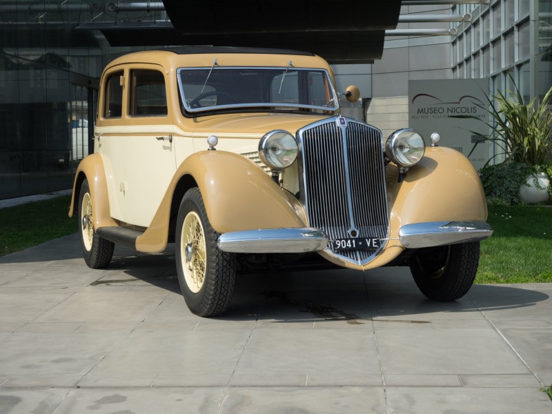 The streamlined body was offered with different bodies: sedan, coupe, and cabriolet version and a wide range of colours was offered as well. Among the characteristics of the car shown in the Museum there are the rear-hinged front doors, the typical “flag indicators” in the rear and tangent-spoked wheels. Near the driver’s seat, there is a crystal vase, where every morning fresh flowers were put and gave a pleasant fragrance to the interior.