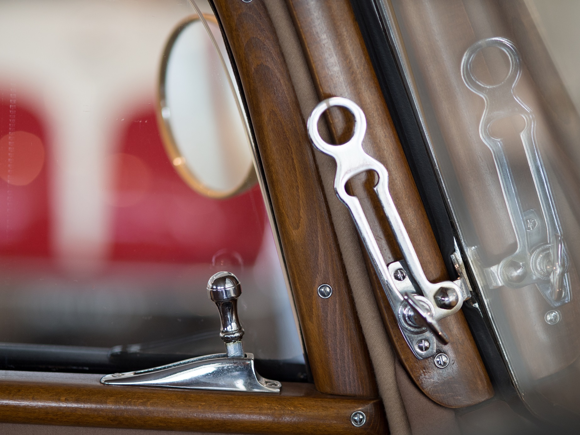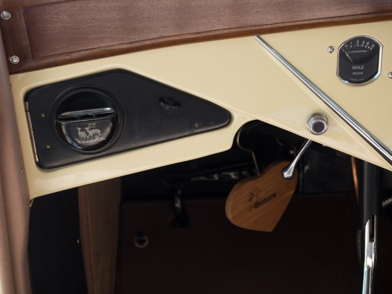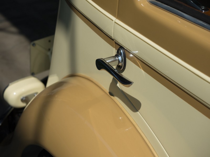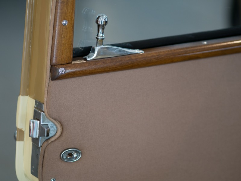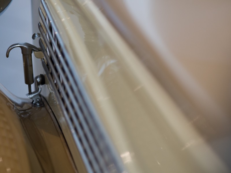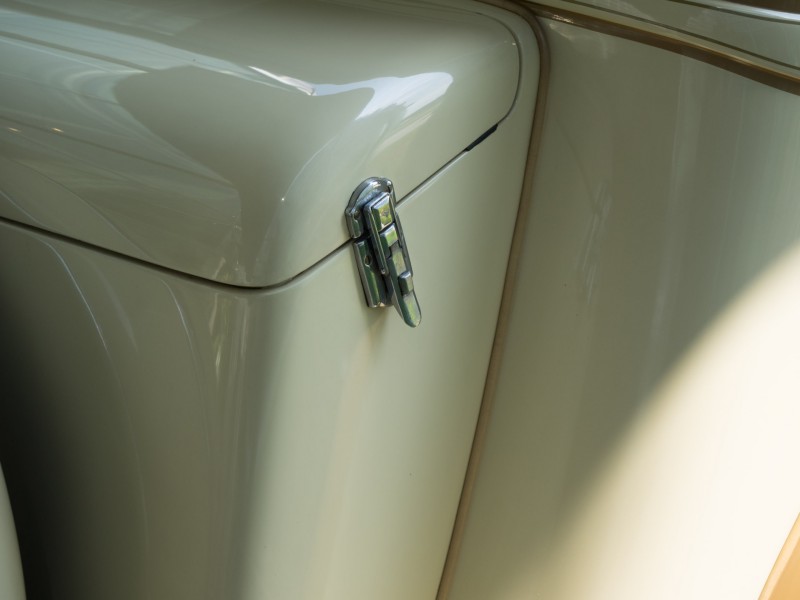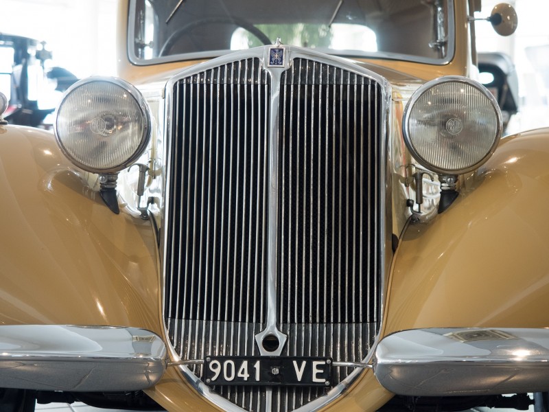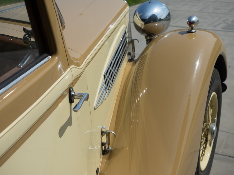 The streamlined body was offered with different bodies: sedan, coupe, and cabriolet version and a wide range of colours was offered as well. Among the characteristics of the car shown in the Museum there are the rear-hinged front doors, the typical “flag indicators” in the rear and tangent-spoked wheels. Near the driver’s seat, there is a crystal vase, where every morning fresh flowers were put and gave a pleasant fragrance to the interior.