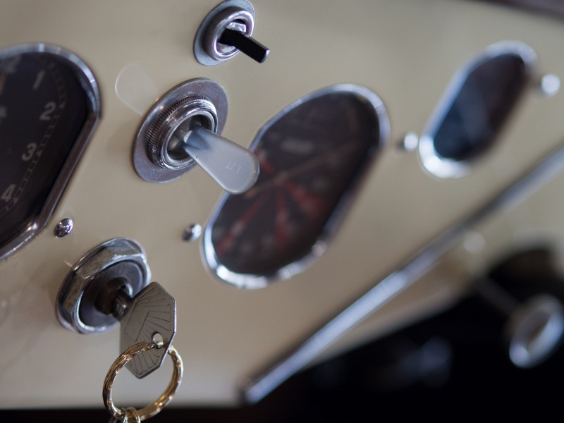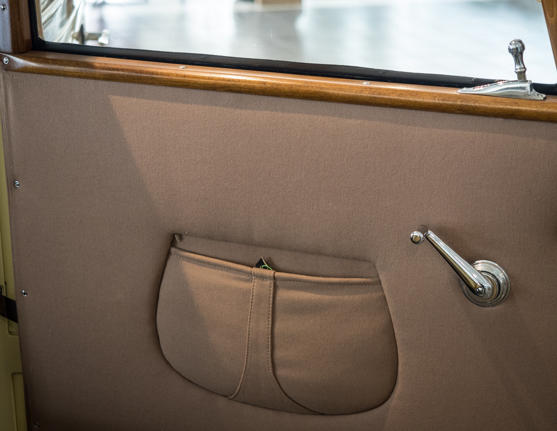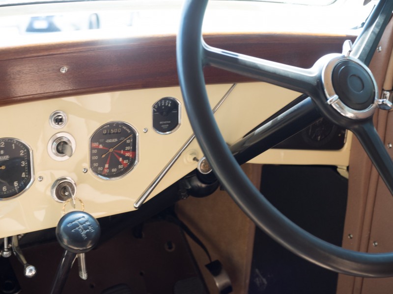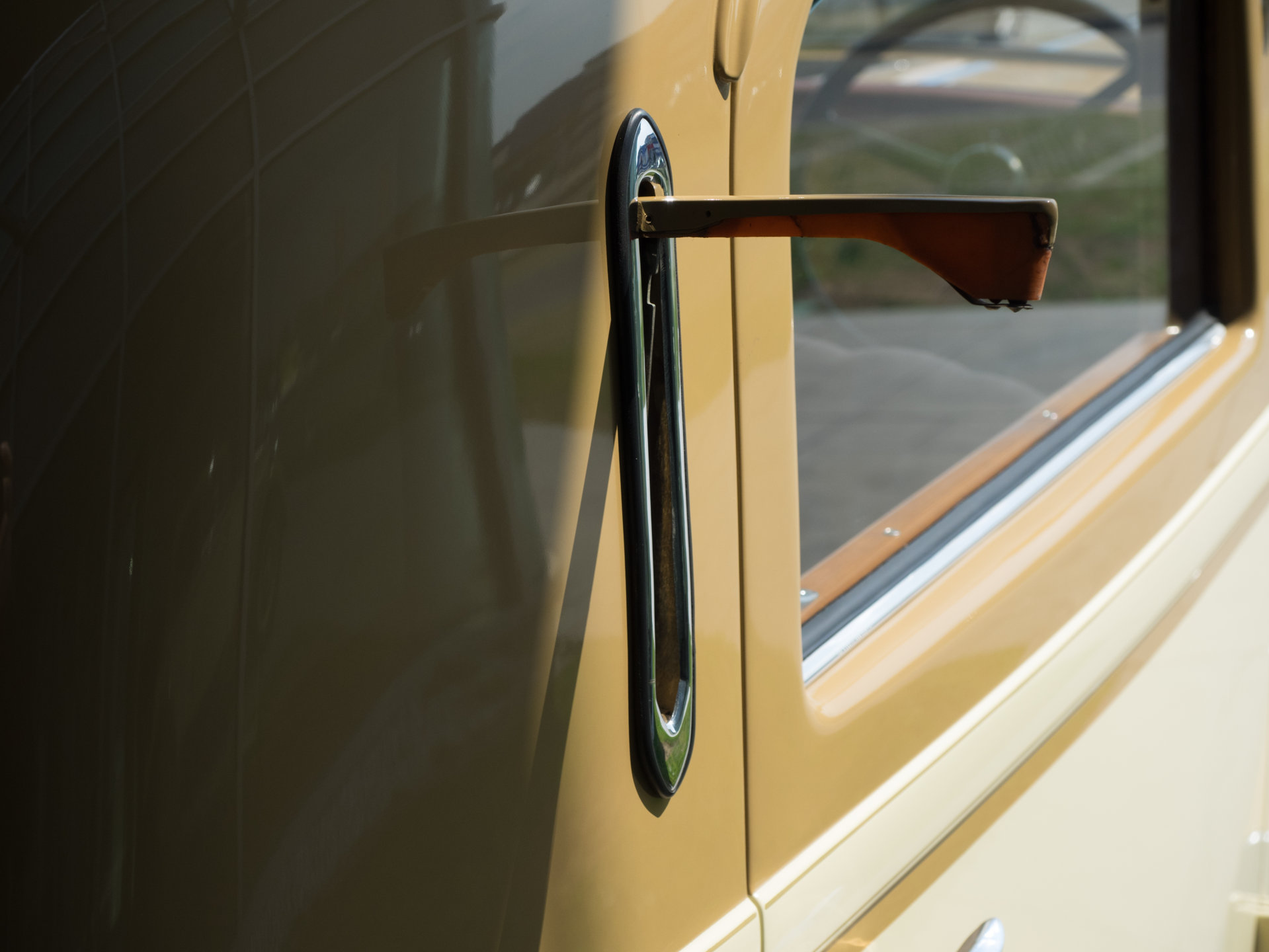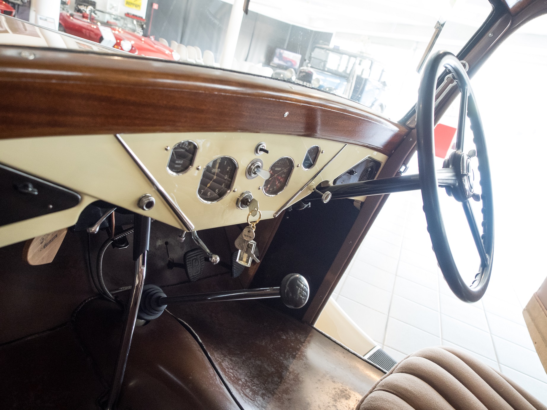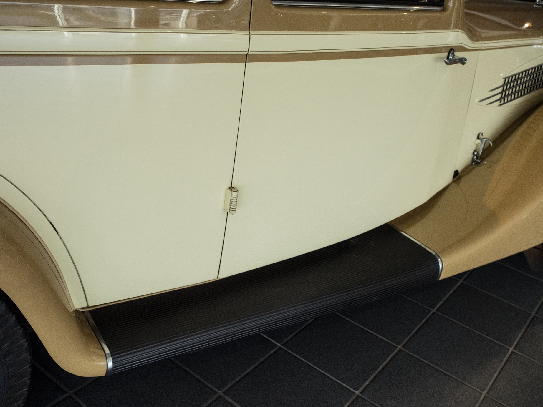 The streamlined body was offered with different bodies: sedan, coupe, and cabriolet version and a wide range of colours was offered as well. Among the characteristics of the car shown in the Museum there are the rear-hinged front doors, the typical “flag indicators” in the rear and tangent-spoked wheels. Near the driver’s seat, there is a crystal vase, where every morning fresh flowers were put and gave a pleasant fragrance to the interior.