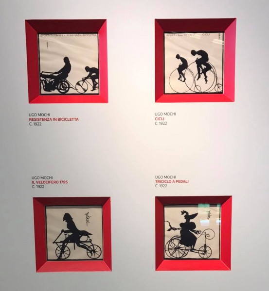vita quotidiana e rappresentata anche con raffinate silhouette, nelle sorprendenti otto tavole originali di Ugo Mochi** (1889-1977) che – da massimo esponente dell’arte delle Shadows in Outline – si divertì a illustrare l’evoluzione del mezzo di trasporto più innovativo e popolare del Novecento: