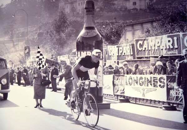 Il legame di Campari con il mondo a due ruote non si esaurisce però nel rapporto con il Giro ma trova infinite declinazioni. Il percorso espostivo prende avvio con una trentina di fotografie d’epoca custodite negli album degli archivi Campari. Le immagini ripercorrono l’arco temporale dagli anni Trenta agli anni Sessanta, in cui il marchio Campari ha seguito i ciclisti del calibro di Coppi, Girardengo, Cinelli, Moser, Anquetil, Baldini, Gaul, Magni, nelle ventuno tappe del Giro d’Italia, nelle tappe del Giro dei Tre Mari e in quelle del Gran Premio di Lugano, diventando, da sponsor delle manifestazioni, vero e proprio compagno delle imprese di una delle discipline sportive più onorate al mondo.