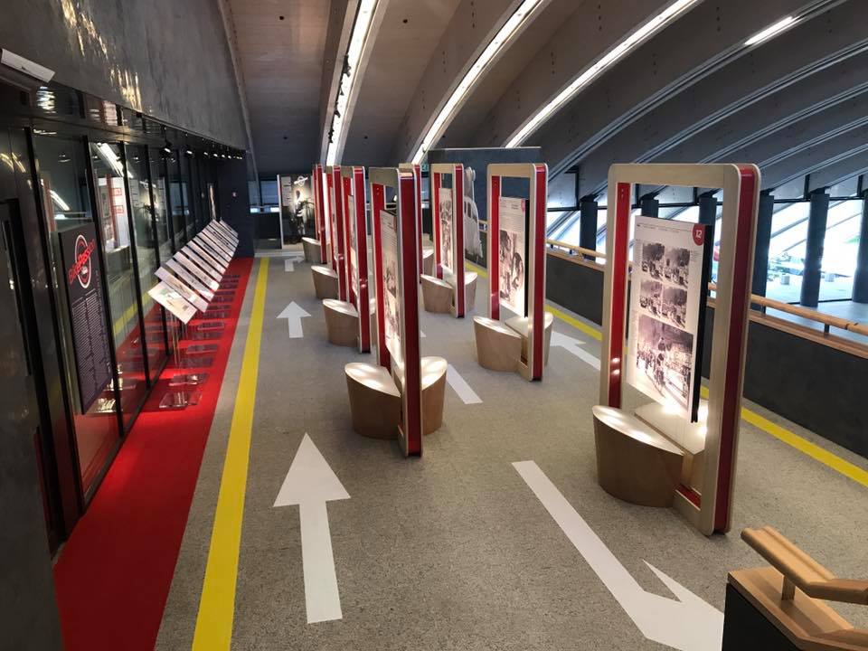 Alle fotografie d’epoca, disposte su una pista che simula il circuito di gara, si affiancano le grafiche pubblicitarie originali, firmate da Franz Marangolo* (1912-1995) e da altri autori degli anni Cinquanta e Sessanta, che propongono una storia fatta di brillanti intuizioni e di strategie comunicative d’avanguardia. Il fil rouge è sempre l’immagine della bicicletta, contestualizzata nella