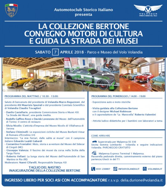 “Sabato 7 aprile al Museo Volandia, situato nei pressi dell’aeroporto di Malpensa, l’Automotoclub Storico Italiano presenterà la “Collezione Asi Bertone”, acquisita a settembre 2016.