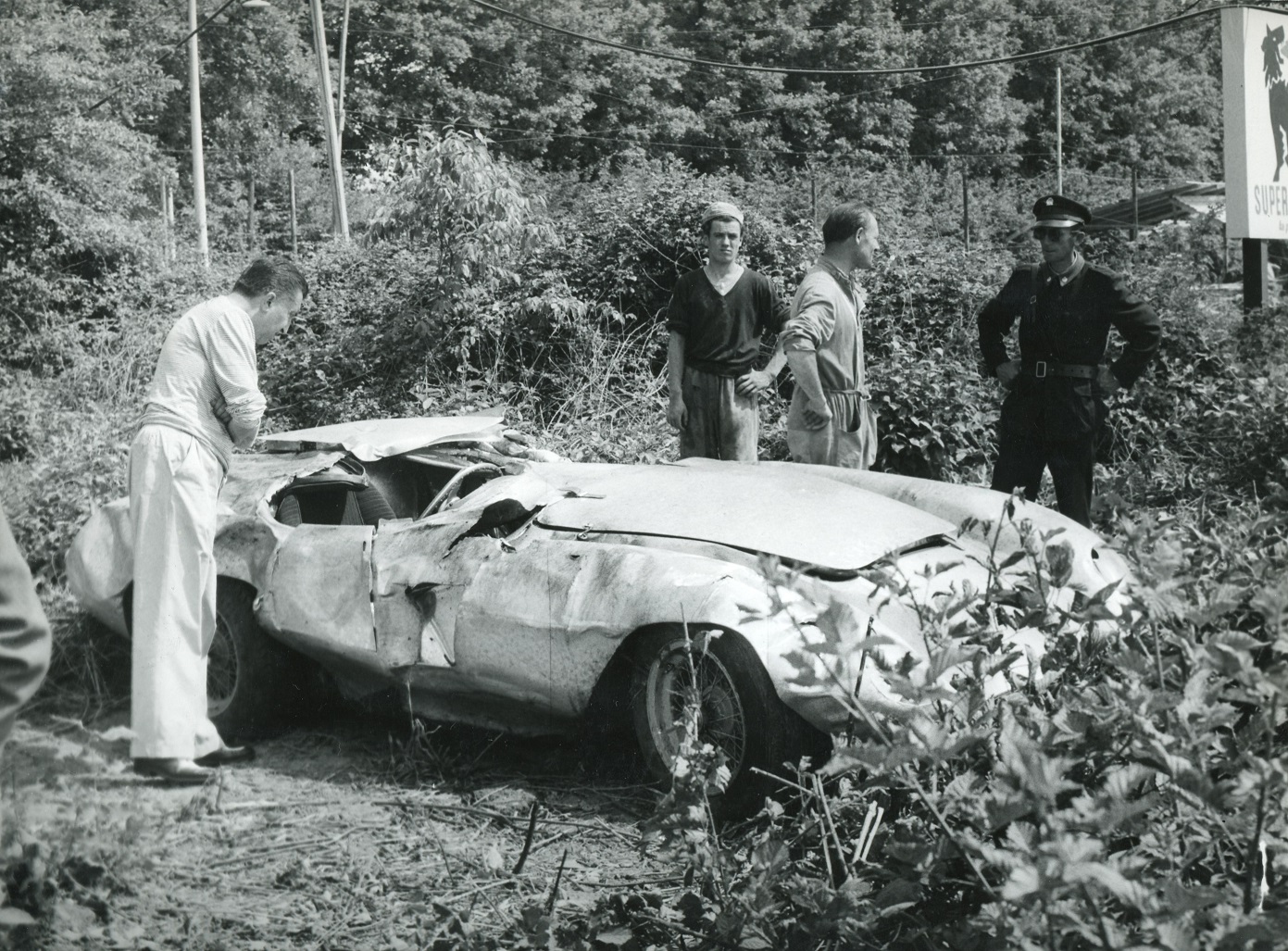 Museo Nicolis, Alberto Ascari, Incidente Monza, morte su Ferrari 750 Sort, 1955, Centro Documentazione, ph. Oggi