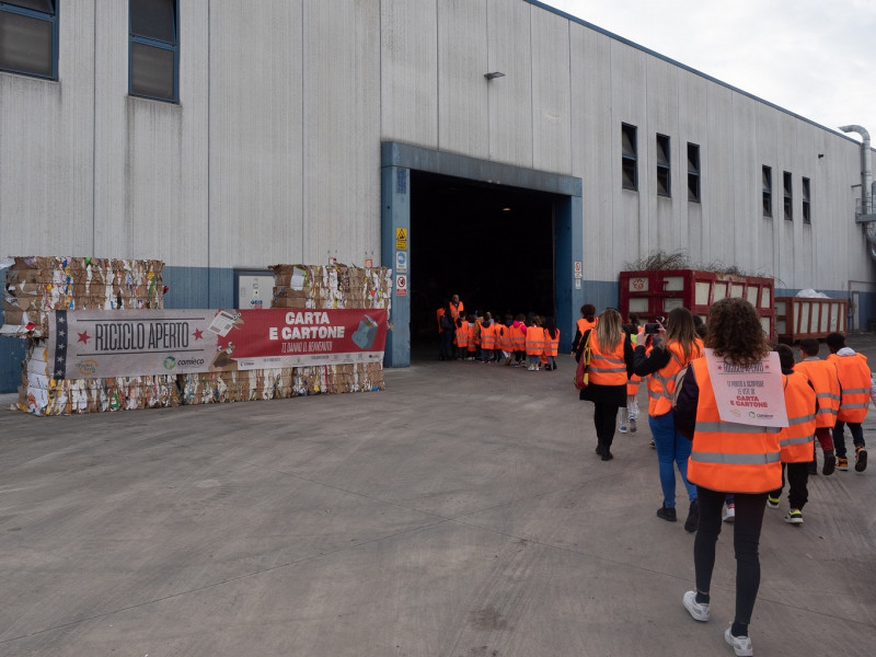 RicicloAperto is in fact a real “open door” of the paper and cardboard supply chain, conceived by Comieco, to show adults and children the reality of paper and cardboard recycling by making them see the most important and lesser-known aspects up close, debunking false myths such as “throw everything away together” and giving value to everyone’s daily commitment to separate waste collection, which gives a boost to the circular economy.