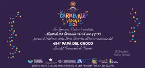 On 23 January, the 494th Papa del Gnoco was crowned at the Palazzo della Gran Guardia – Paolo Fabrello -. He is a name dear to the Verona Carnival, as he already wielded the golden fork eight years ago, in 2016.