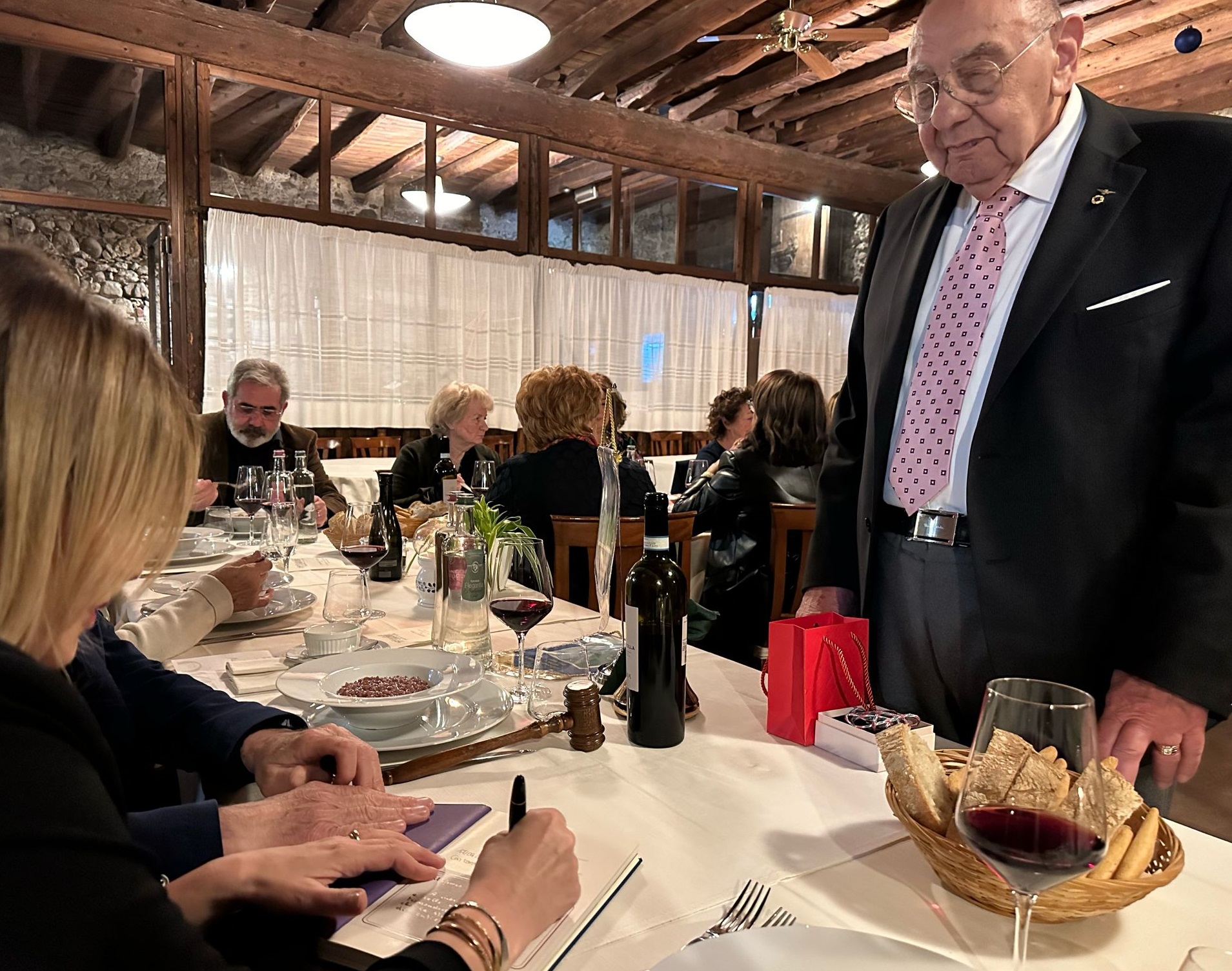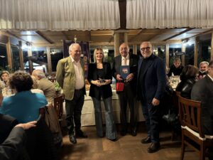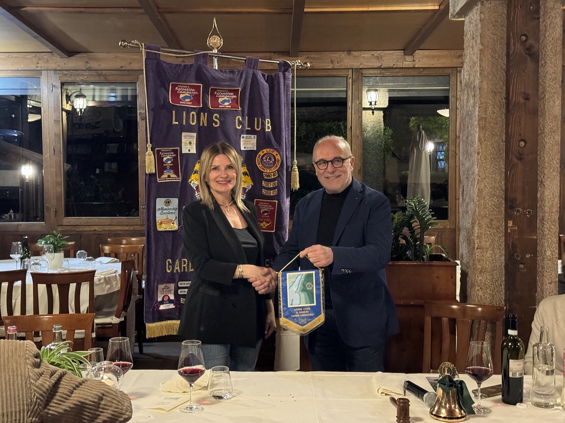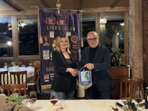 Silvia Nicolis special guest at the convivial evening of the San Vigilio Garda Orientale Lions Club at the well-known Tre Camini Restaurant. It was an open dialogue between her and President Fabio Coltri to share with the guests her personal and business experience in the Verona area but also the international one. In addition to receiving the Lions Club effigy as a gift, Silvia had the pleasure of collecting the Motom Club medal intended for her father Luciano in 2002 from the hands of Giuseppe Sargenti collector and owner of the Museo Motom.