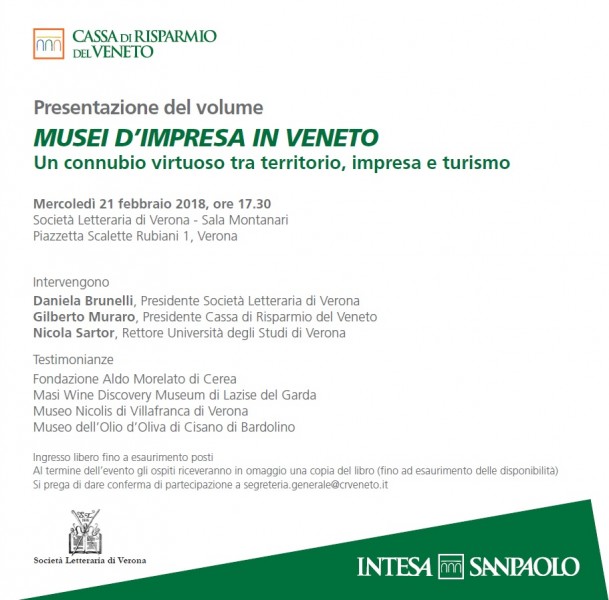 21 febbraio 2018 – Presentazione del volume “I musei d’impresa in Veneto. Un connubio virtuoso tra territorio, impresa e turismo” presso la Società Letteraria di Verona.