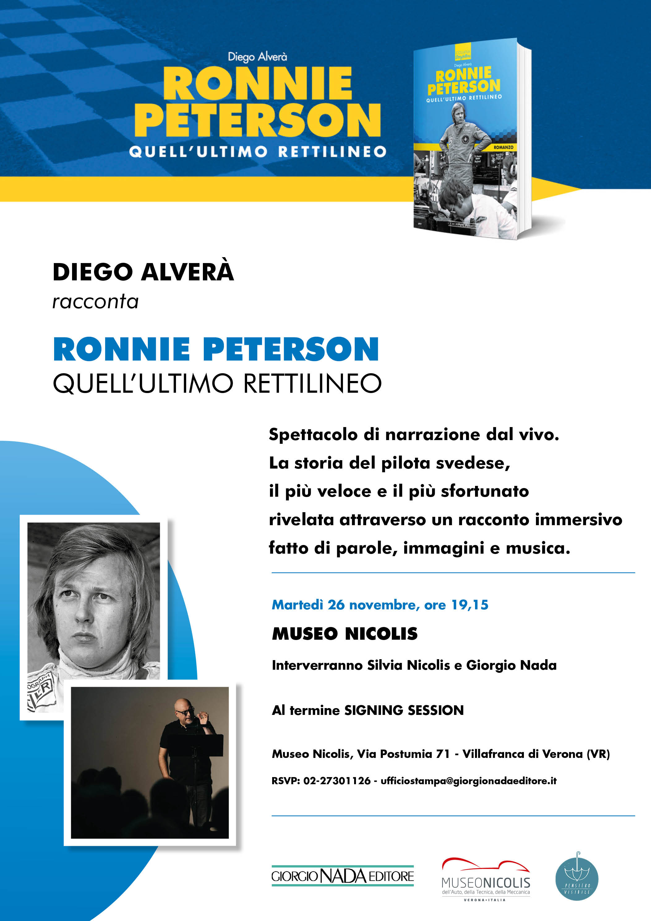 Tuesday 26th November at 7:15 p.m. Diego Alverà, writer and storyteller, intruduced his new book “Ronnie Peterson, quell’ultimo rettilineo”, pubblished by Giorgio Nada Editore.