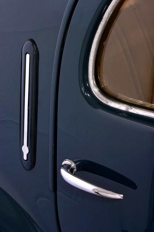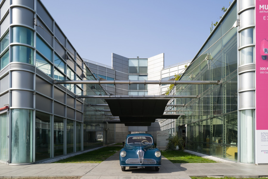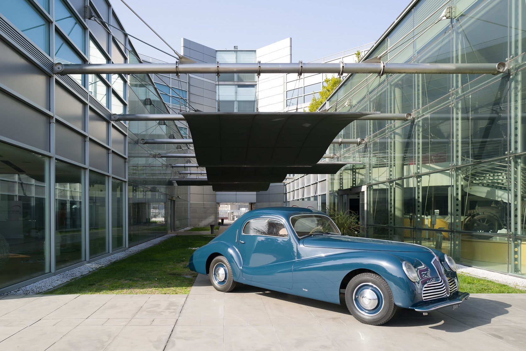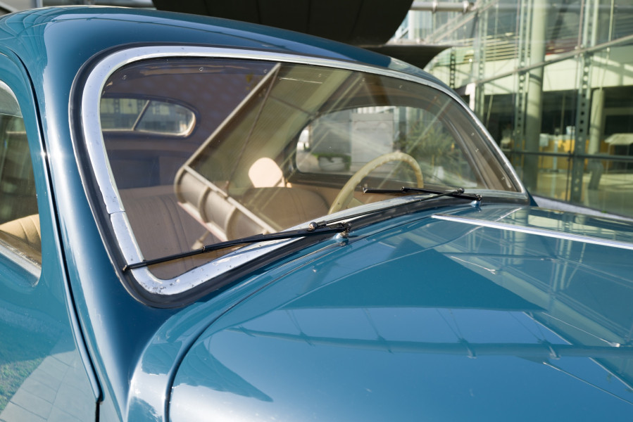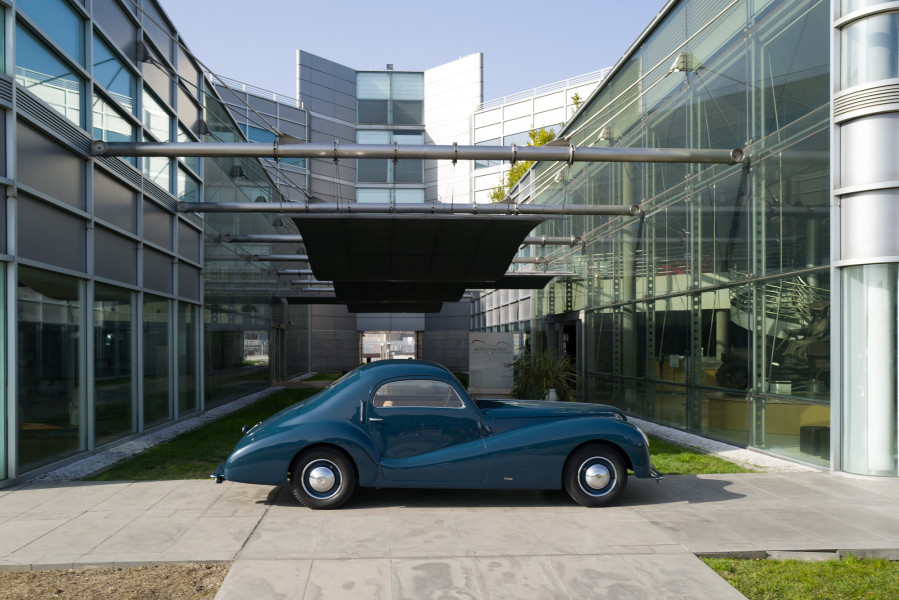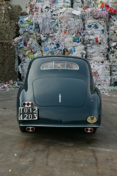 The research of new styles and aerodynamic concepts is evident: the windshield angle, the front fenders that join the rear ones, anticipating the future "ponton" bodies (where the wheel arches and lights merge with the body). The front grille is peculiar, with the center shield and two lateral moustaches that recall the typical Alfa Romeo front end.