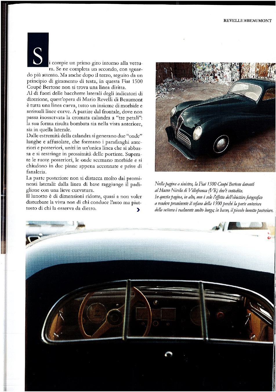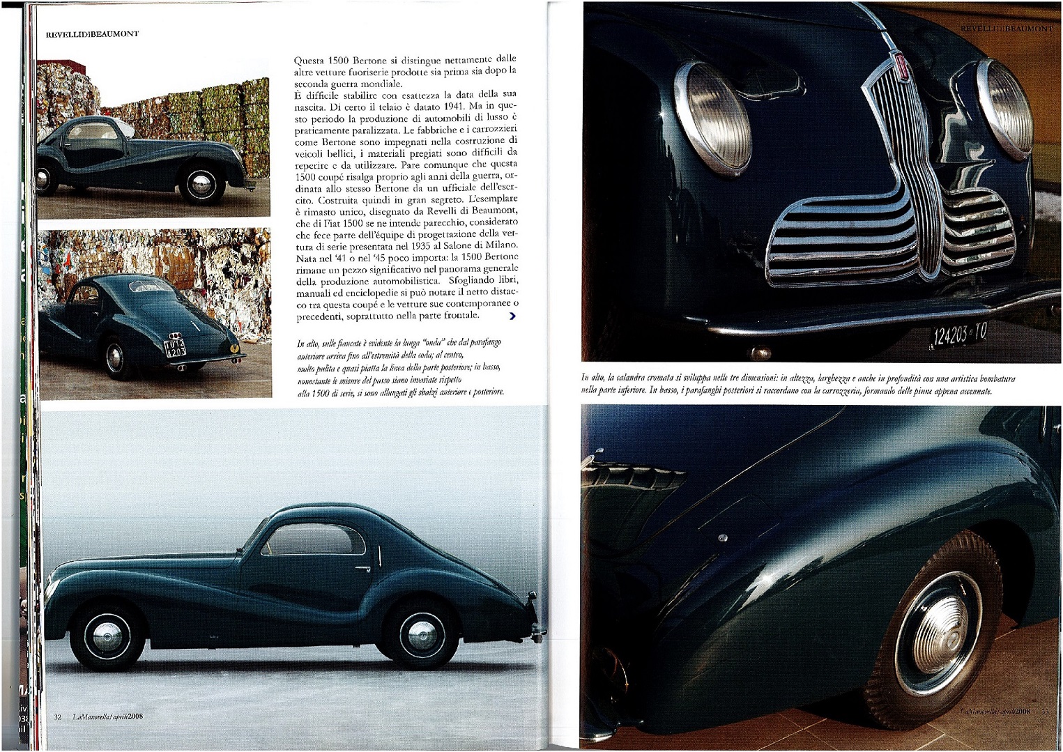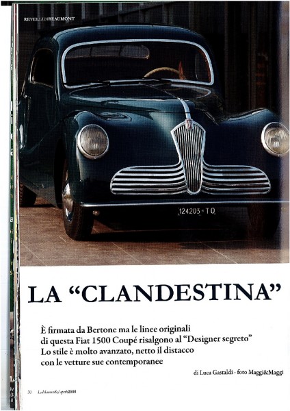 Carrozzeria Bertone was the first to make its own interpretation of the new Fiat model: in 1936 they had already launched some sedans that enhanced the streamlined stock model with their lines. The body of the car was drawn by Mario Revelli of Beaumont during the last years of WWII and built by Bertone in 1945 on a 1941 chassis.