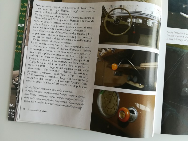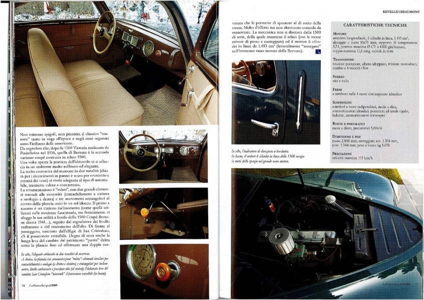 The 1500 was unveiled at the 1935 Milan Car Show. The engine was based on the "Balilla" one with two cylinders added, reaching a total displacement of nearly 1500cc: almost a size record for an inline 6.