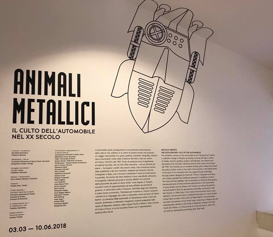 E’ stata inaugurata alla Casa d’Arte Futurista Depero di Rovereto, la mostra “Animali Metallici Il Culto dell’ Automobile nel XX secolo” a cura di Nicoletta Boschiero e Federico Zanoner.
