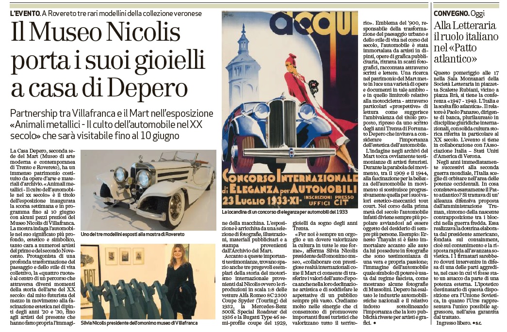 “Per noi è sempre un orgoglio ed un dovere valorizzare la Cultura in tutte le sue forme” afferma Silvia Nicolis presidente dell’omonimo museo “collaborare con prestigiose realtà internazionali come il Mart e la Casa d’Arte Futurista Depero ci consente di trasferire i valori dell’auto d’epoca anche nella loro declinazione artistica e di soddisfare le aspettative di un pubblico sempre più vasto. Crediamo molto nelle collaborazioni che ci consentono di consolidare e promuovere importanti flussi turistici che valorizzano tutto il territorio”.