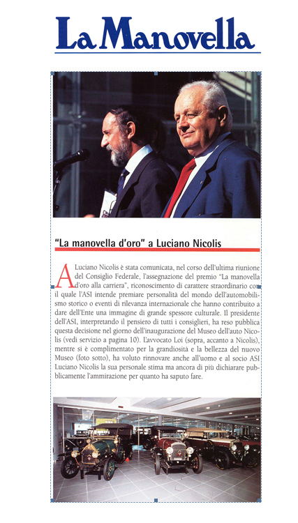Assegnato a Luciano Nicolis da A.S.I. Automotoclub Storico Italiano il prestigioso Premio “La Manovella d’Oro alla Carriera“.