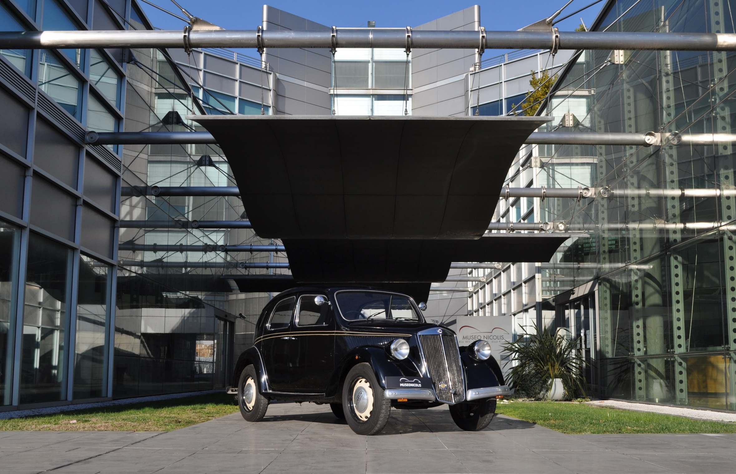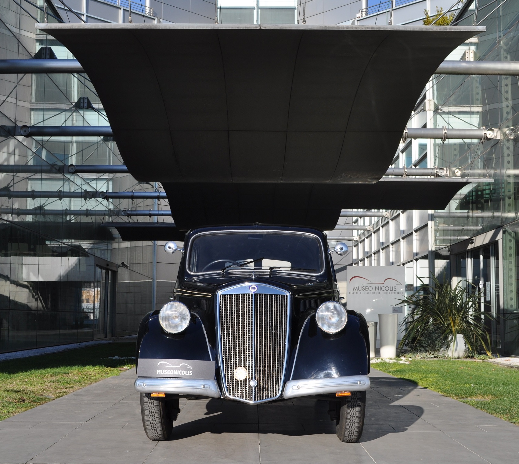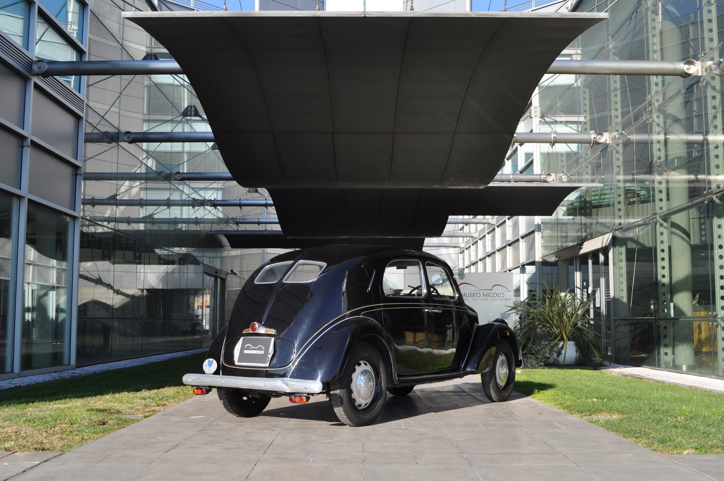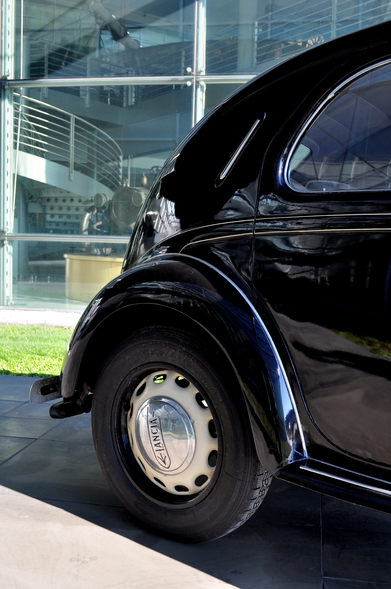 Museo Nicolis' Ardea is a Mk1 car from 1941, with a 6 Volt electrical system and instead of the fully-opening trunk as found in the Aprilia, there is a little door for the spare tire behind the rear plate. Another interesting detail is the door opening with no B pillar, a styling cue Lancia will later keep, and the stylized spear on the top of the hood that opens it if you twist it.