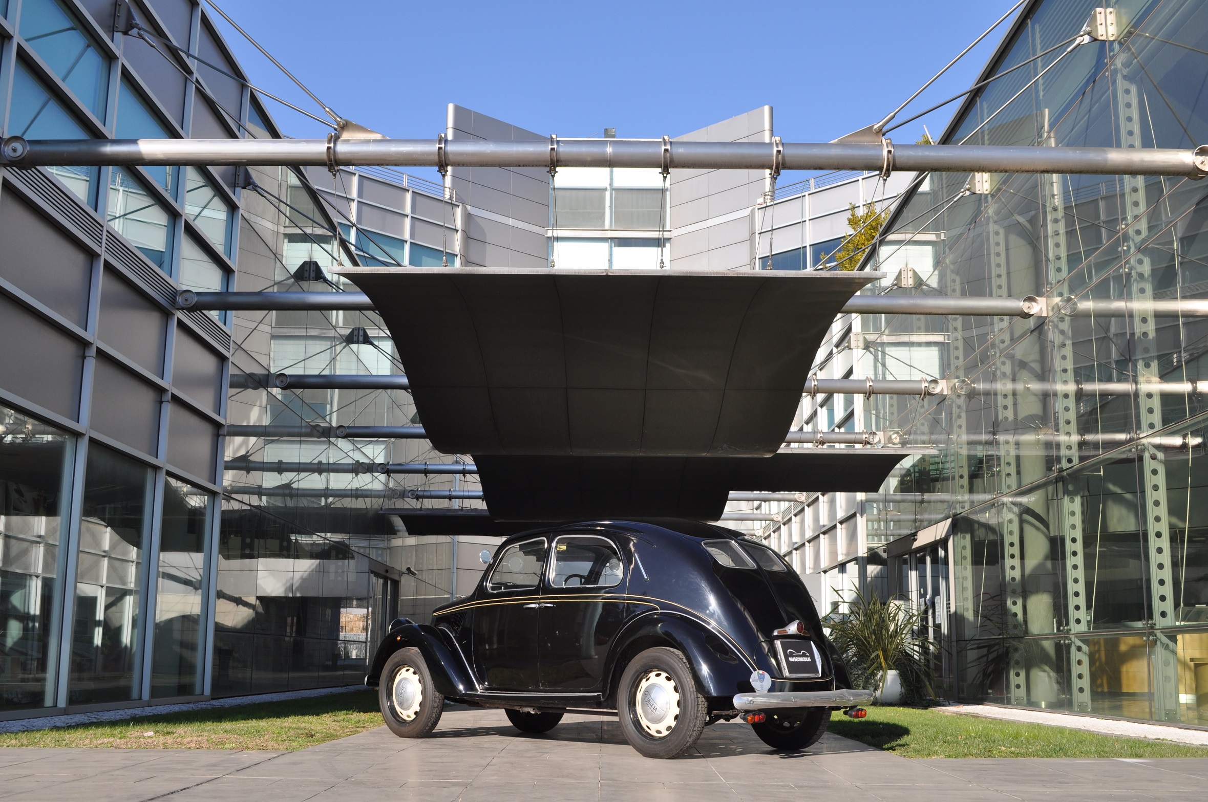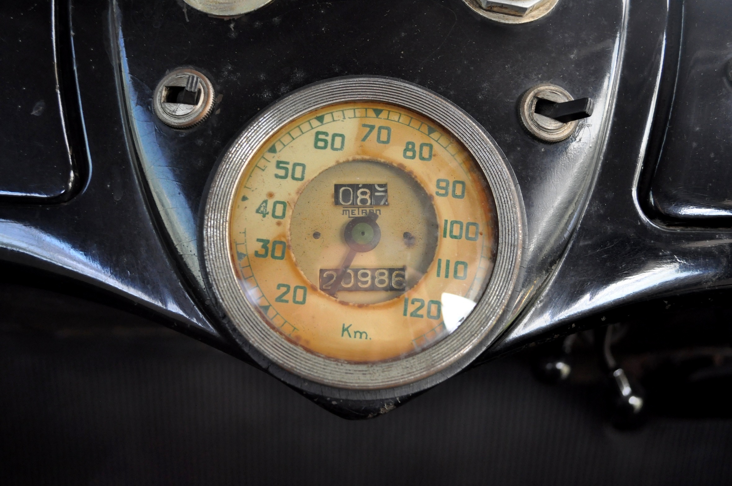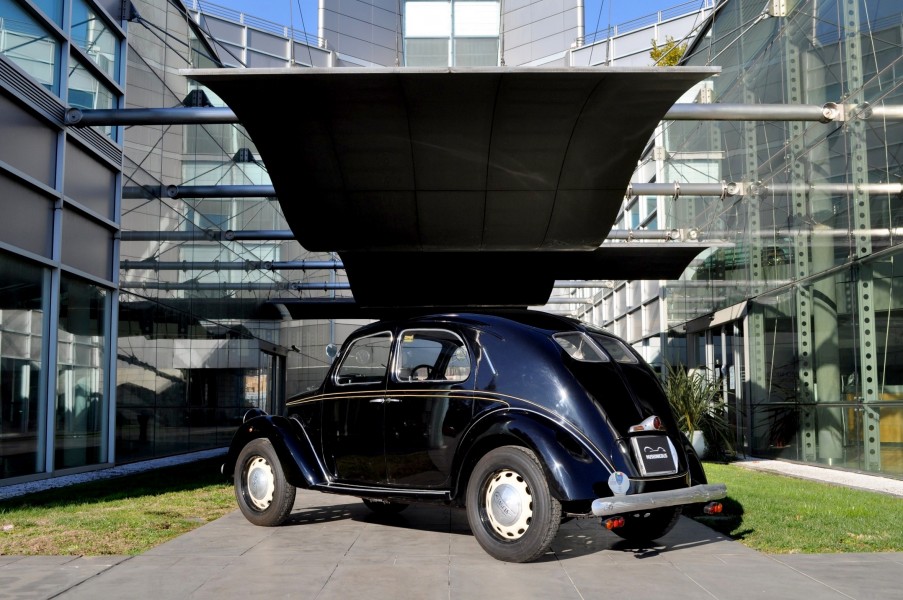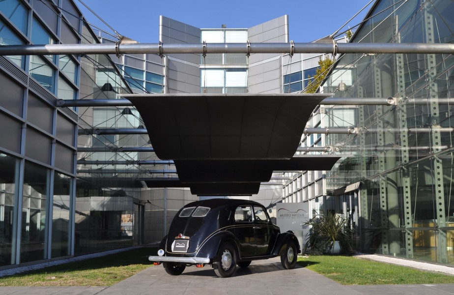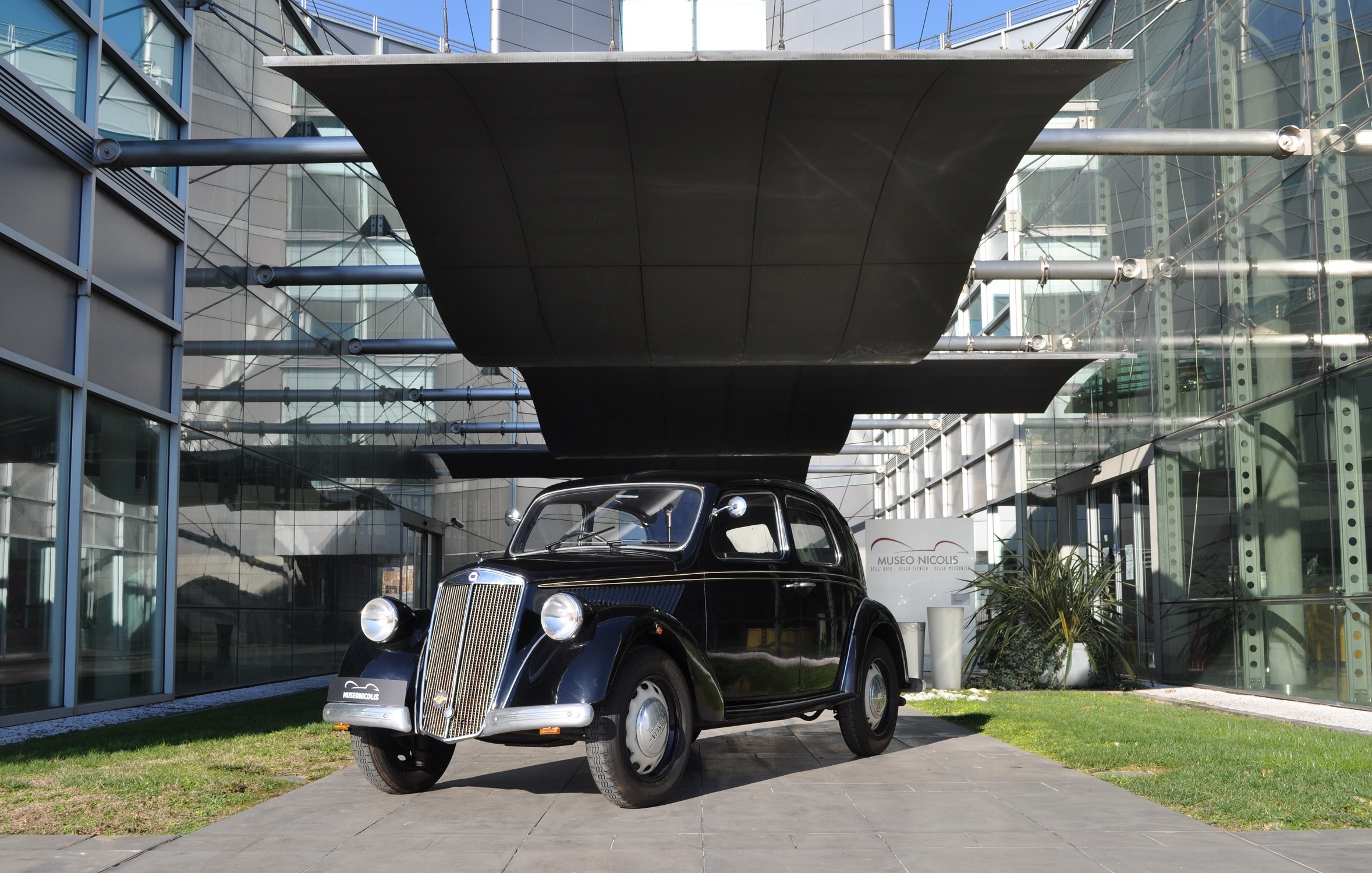 Museo Nicolis' Ardea is a Mk1 car from 1941, with a 6 Volt electrical system and instead of the fully-opening trunk as found in the Aprilia, there is a little door for the spare tire behind the rear plate. Another interesting detail is the door opening with no B pillar, a styling cue Lancia will later keep, and the stylized spear on the top of the hood that opens it if you twist it.
