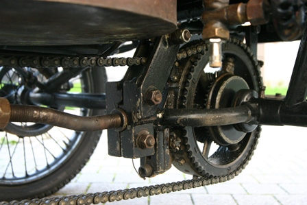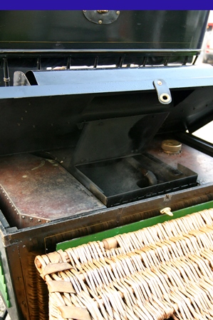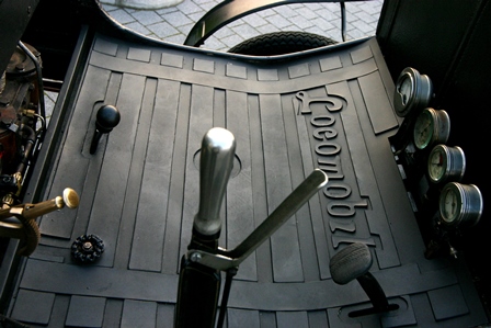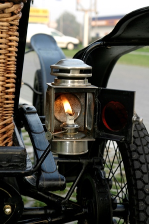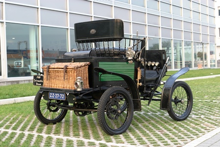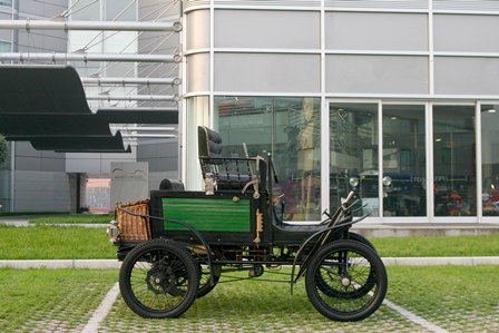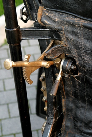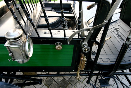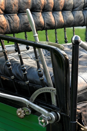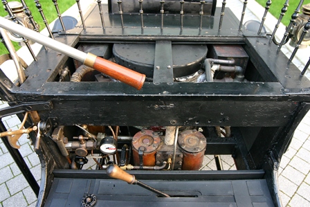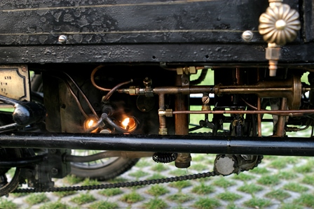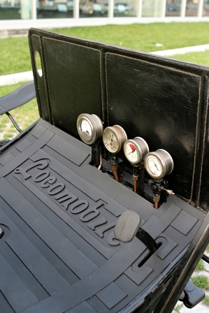 The car in the Museum is a Steam model with runabout (roadster) body; behind the two-seat bench you can note a wicker trunk, a typical "after-market" accessory of the time. The car overall lightness is highlighted by the nearly cycle wire wheels, and it is stili fitted with the steering bar.