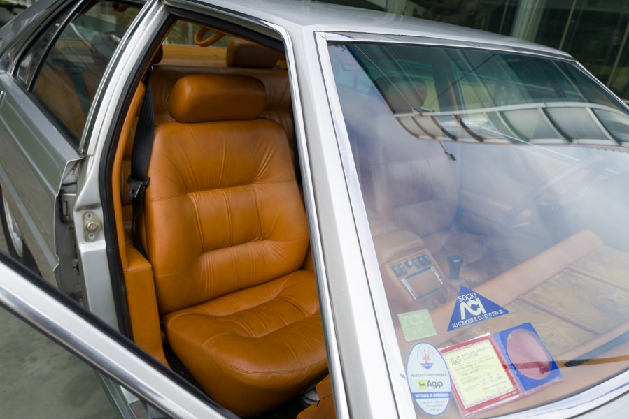 Designed by the Giorgetto Giugiaro’s Italdesign and known among the enthusiasts as Quattroporte 330 (the factory name for the project), the 1976 Quattroporte marked the coming back of Maserati on the luxury car market, which in the Sixties had already seen the Modenese firm as the almost exclusive protagonist. The front of the car is characterized by the classic, protruding chrome grille in which two rectangular headlights appear. This unusual combination, imposed for reasons of production cost, would mark the fenders of Maseratis from then on. The interior, on the other hand, featured luxurious trim with leather or velvet.