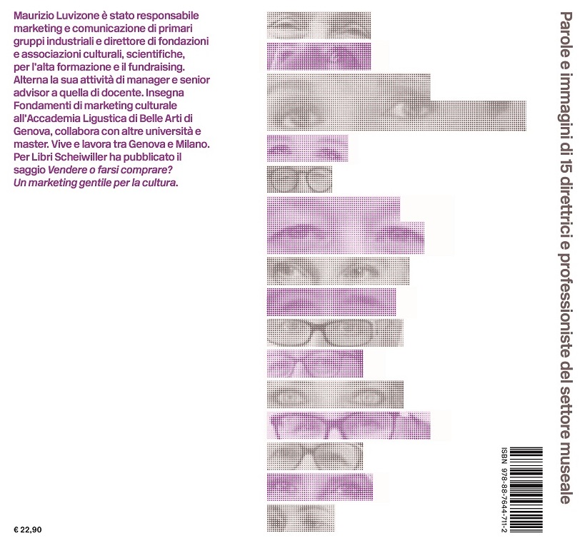 In this volume of the Scheiwiller series dedicated to interviews with leading figures from the world of culture, Maurizio Luvizone talks with fifteen female directors and senior managers of Italian and international museums on the centrality of the female gender in the realisation of a new way of doing museums in the world. Of how the ‘female gaze’ is accompanying contemporary museum management towards a vision more oriented to the happiness of the public, to relations with territories, to participation, to inclusiveness.”