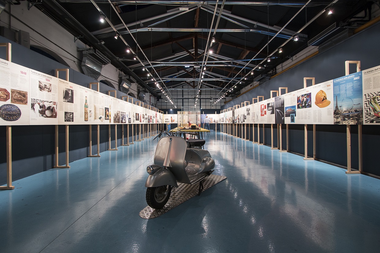 La mostra èospitata nel contesto unico del Museo Piaggio, nato dal sapiente recupero architettonico degli oltre 3.000 metri quadrati dell’ex officina attrezzeria, uno dei corpi di fabbrica più antichi e affascinanti del complesso industriale di Pontedera dove l’azienda insediò la propria produzione a partire dai primi anni Venti del ‘900. Come in una macchina del tempo, l’esposizione iconografica percorre oltre due secoli di storia del design italiano attraverso gli oggetti, le invenzioni, le intuizioni, gli “azzardi” nati dall’ingegno dei capitani d’industria e dei poeti delle fabbriche, dei visionari delle officine nonché dalla straordinaria abilità delle nostre maestranze.