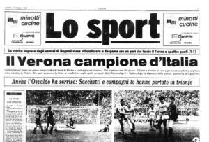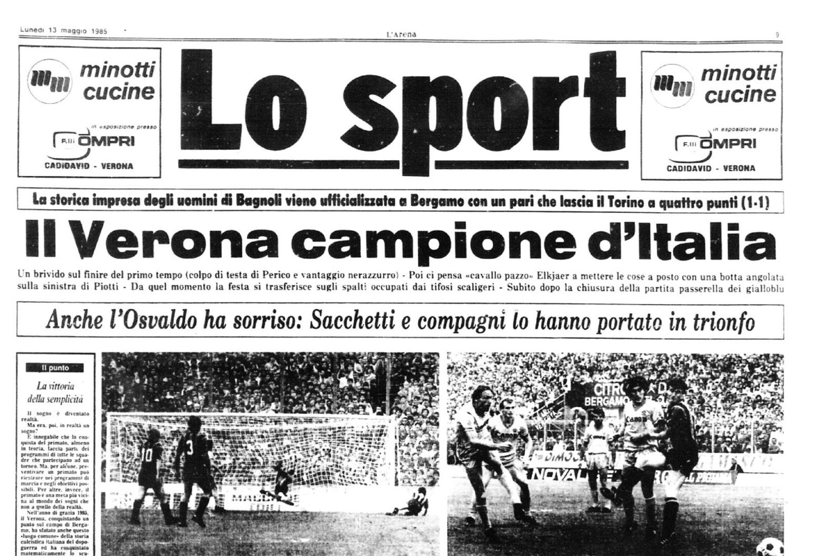 On 12 May 1985, with one day to spare, Verona won the 1984/1985 Serie A football championship, thanks to a 1-1 draw in Bergamo at Atalanta: Elkjaer equalised Perico’s goal and the celebrations began. It was the only Scudetto won by Hellas Verona in its history, the only one obtained by a team from the Veneto and the only one won in the post-war period by a team from a city that was not a regional capital: the last had been Pro Vercelli in 1921-1922.