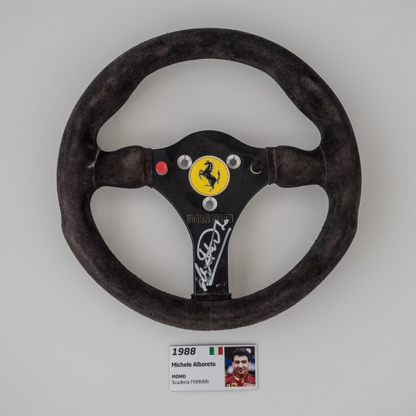 Michele Alboreto, the last Italian driver chosen directly by Enzo Ferrari for his single-seaters, is remembered in the Nicolis Museum’s exhibition with as many as four steering wheel specimens. The Lombardy driver had grown up with the legend of Ronnie Peterson, an extremely talented Swedish driver, who never became world champion but was well respected for his great courage. Alboreto had studied the way his idol Ronnie held the steering wheel, carefully copying his manner