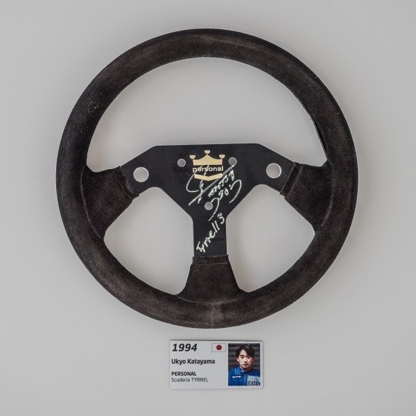 Ukyo Katayama has not entered the pantheon of the great drivers that have made the history of Formula One. Yet this Japanese driver felt his hands shake, not in the cockpit of the Tyrell (two of its steering wheels, dating from 1994 and 1995, are present in the exhibition), but from the task entrusted to him, on the Suzuka Circuit, of driving round the descendants of the Japanese imperial family, on their visit to the Honda track. It seems that the steering wheel is still soaked with sweat!