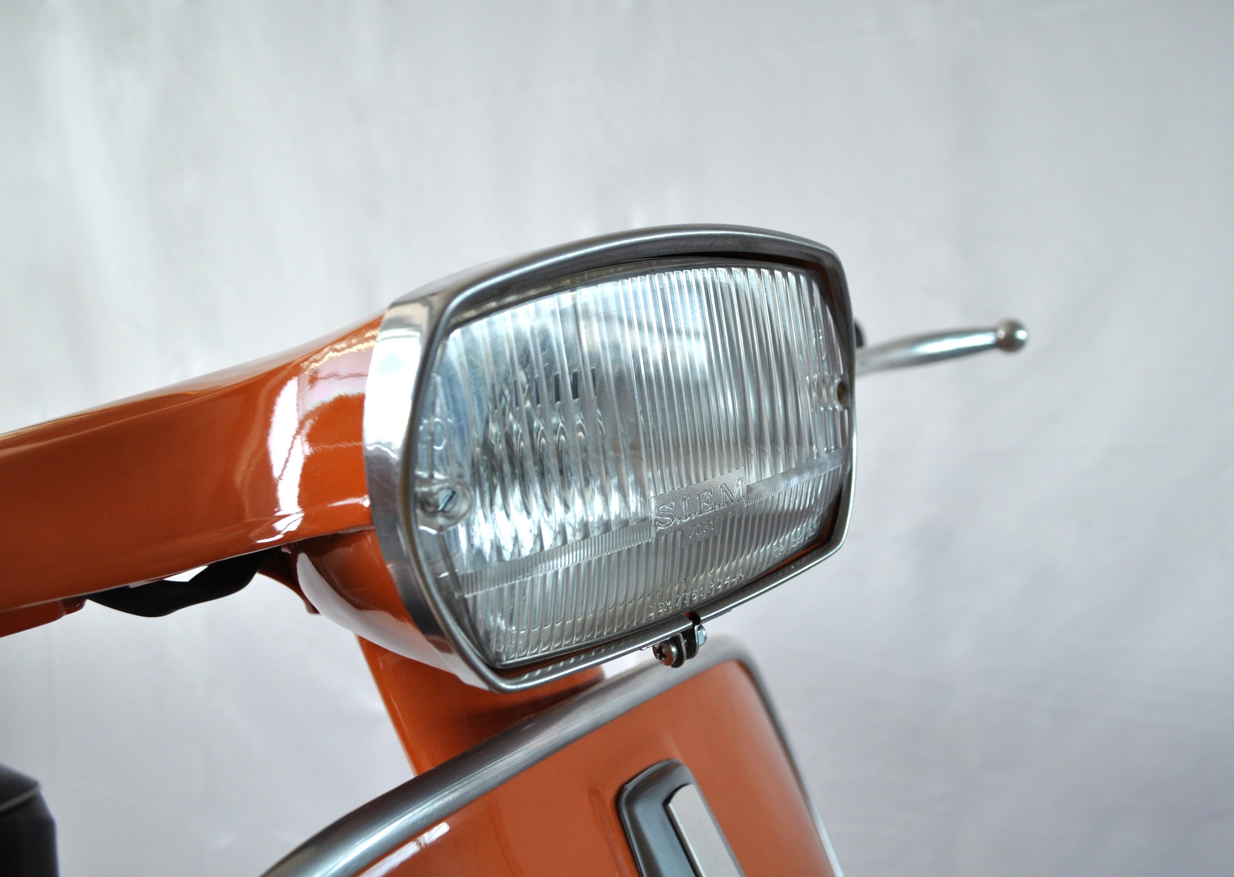 The Vespa 50 Special was presented starting from 1969 and remained in production until 1983. The Vespa 50 special differs from the other models for the square headlight and for the steering cover with original shape called by enthusiasts “Nasello”.