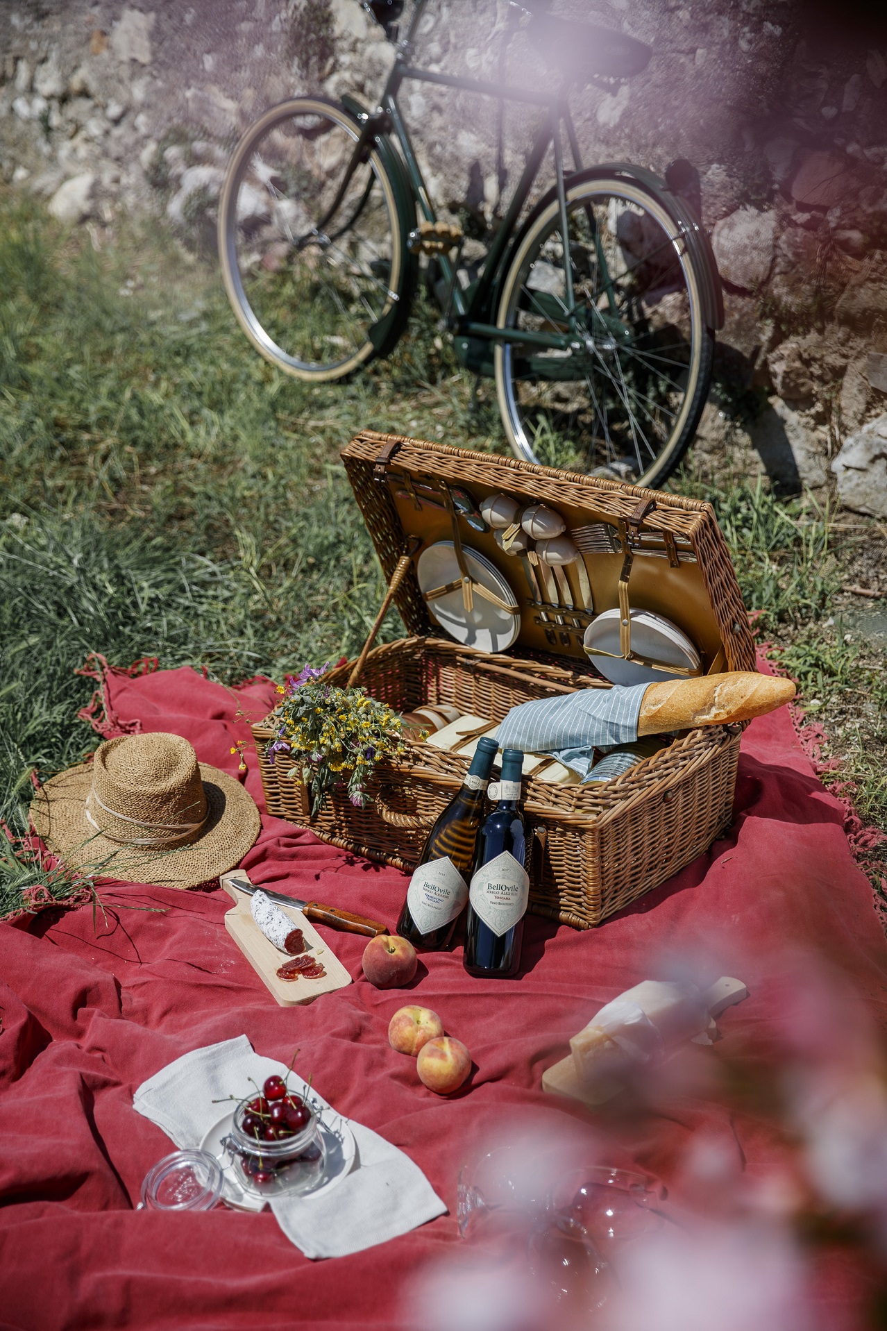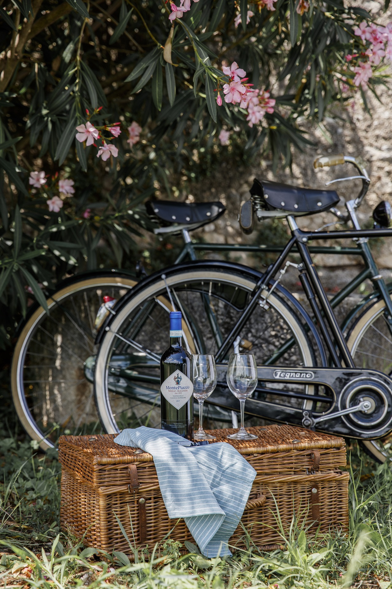 Vintage bicycles and objects of Museo Nicolis protagonist in the photos of Possessioni Serego Alighieri wine: 40s Legnano, 30s Taurus, 1950 Damiani, Ferrania Ibis, a 1954 camera and a 60s picnic basket.