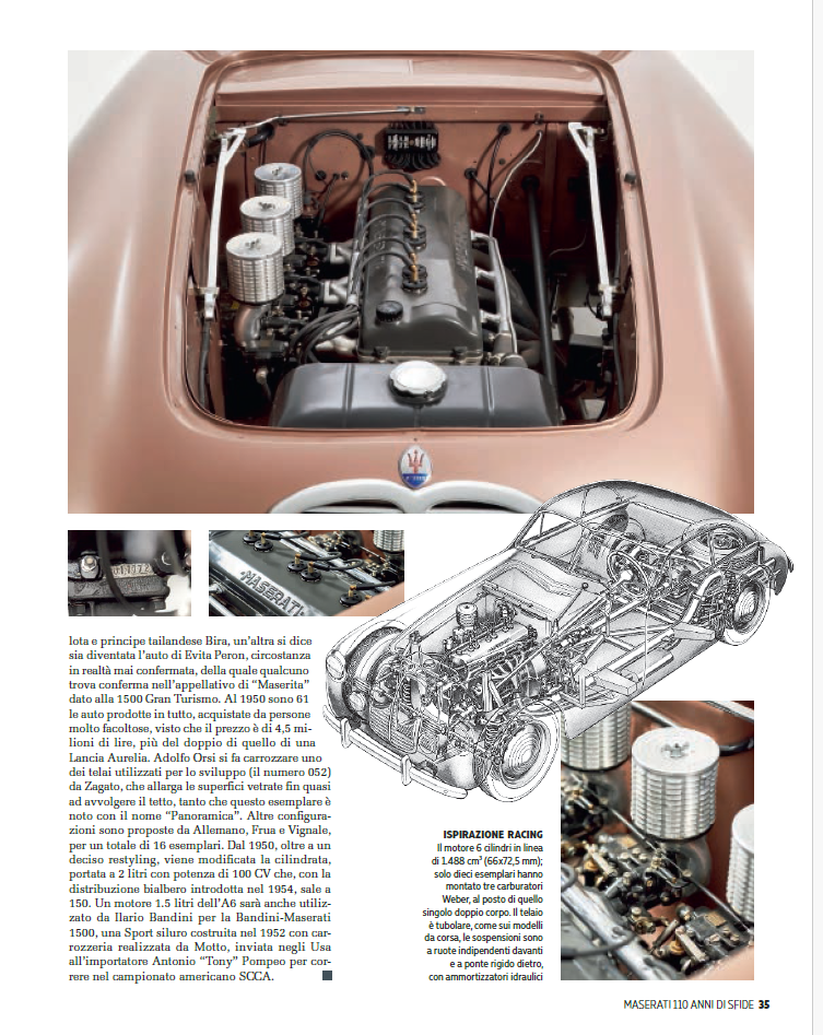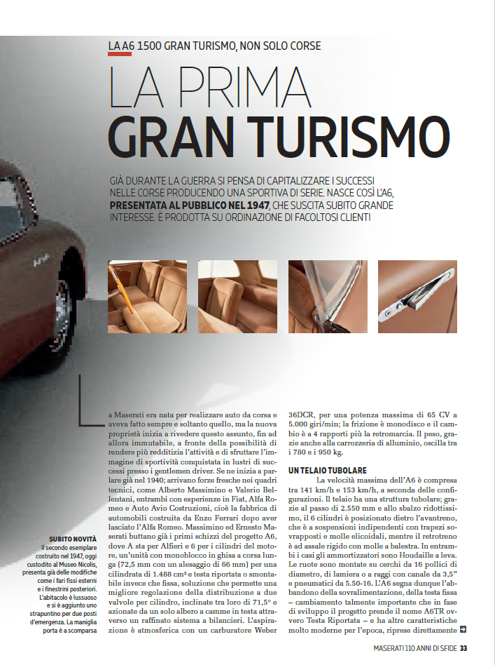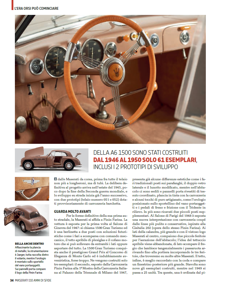 Extensive coverage of the 1947 Maserati A6 1500 Pinin Farina from the Museo Nicolis, the company’s first Gran Turismo, in the July Ruoteclassiche special dedicated to 110 years of Maserati history!