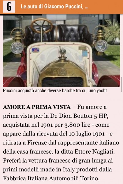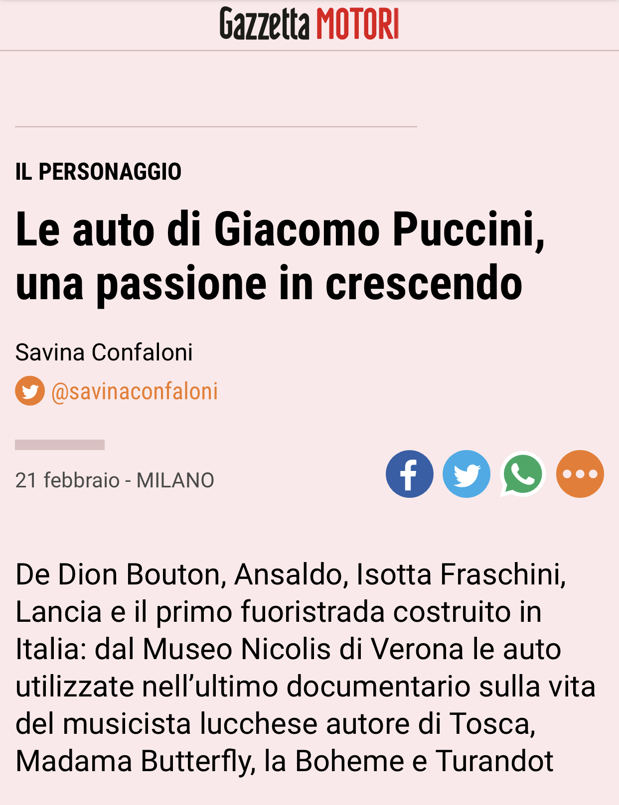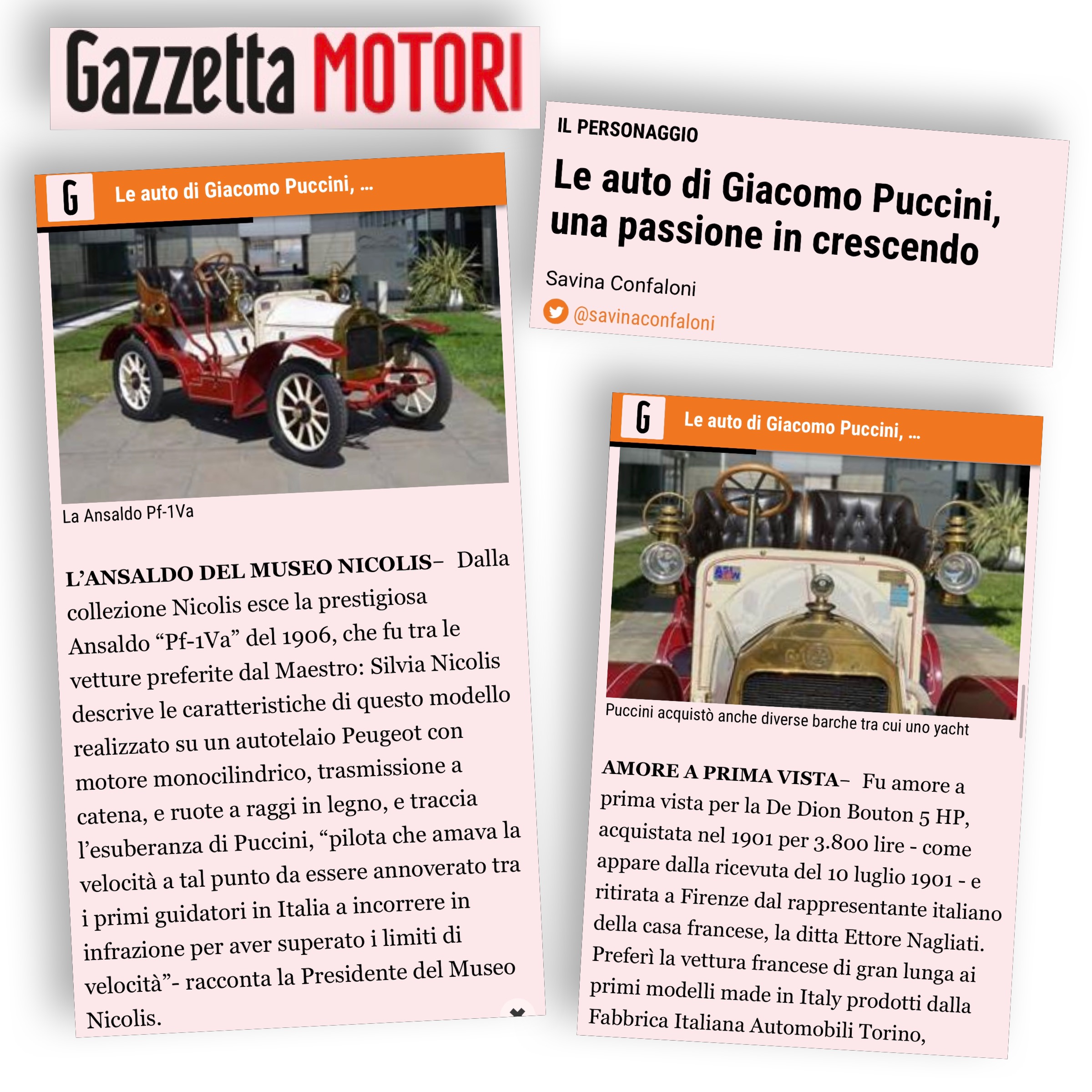 Museo Nicolis on Gazzetta Motori thanks to the article of Savina Confaloni on Puccini’s life and passion for cars.