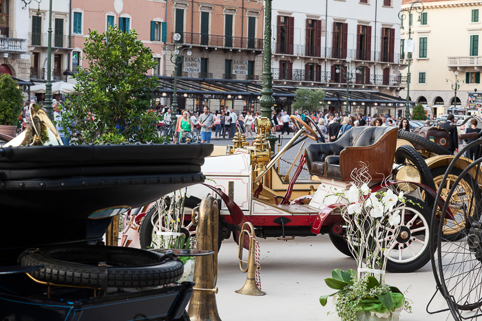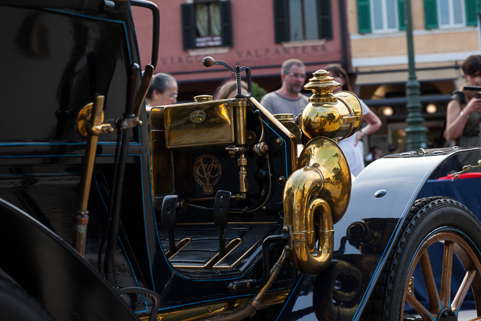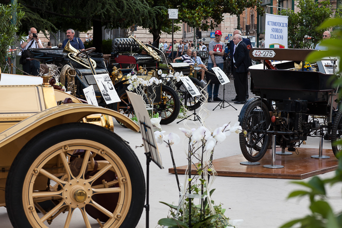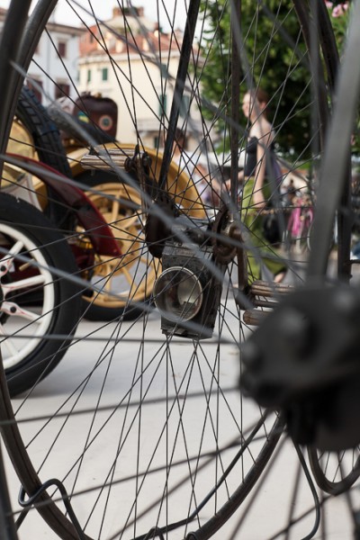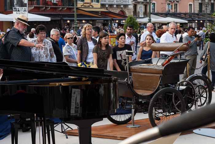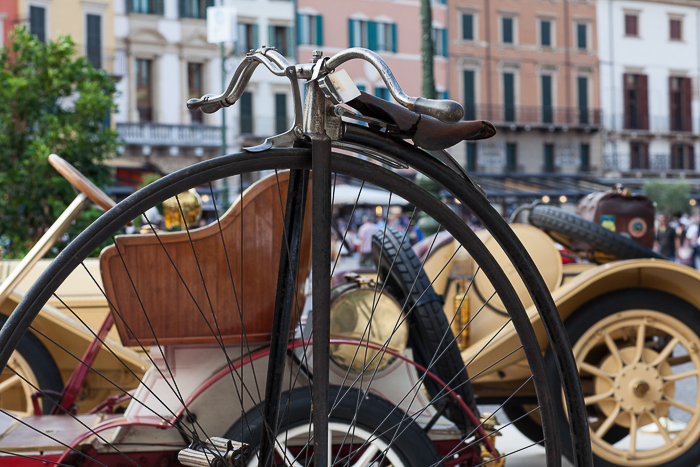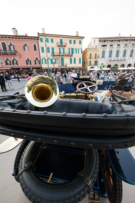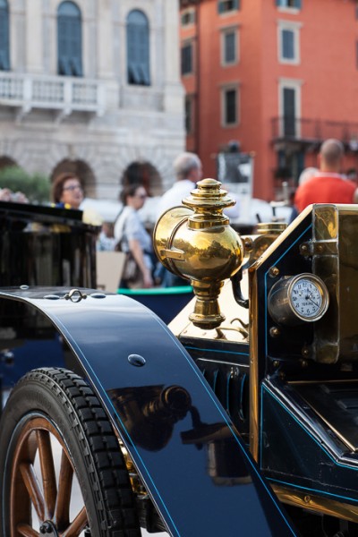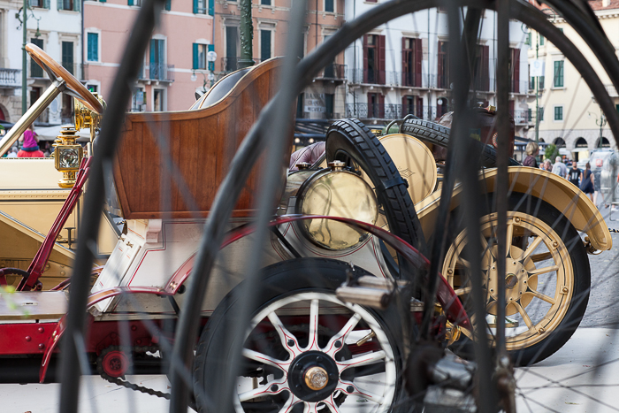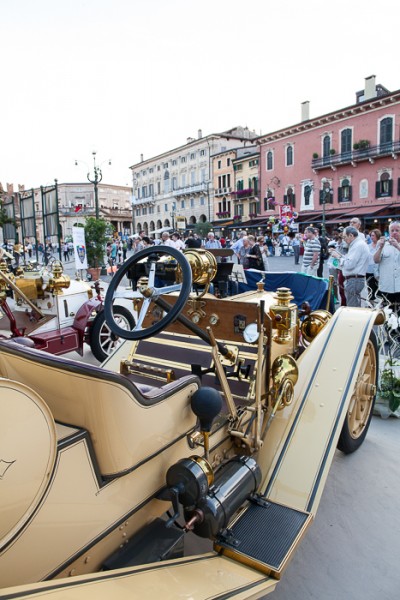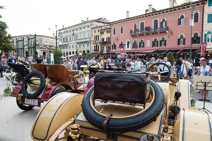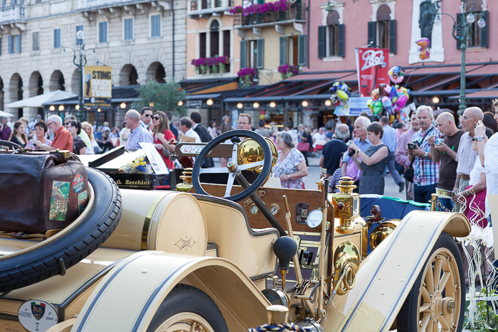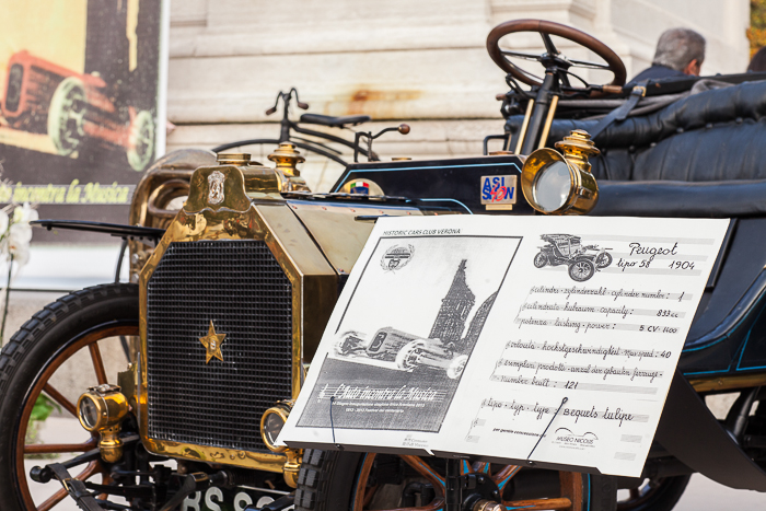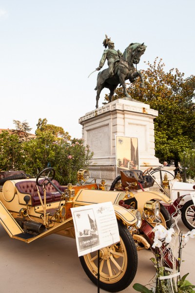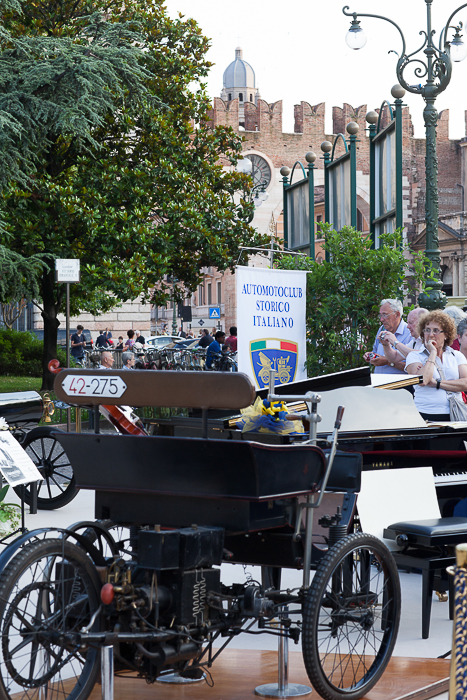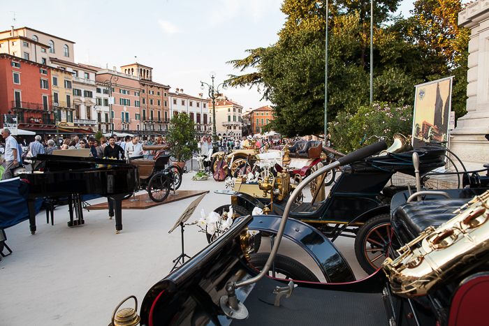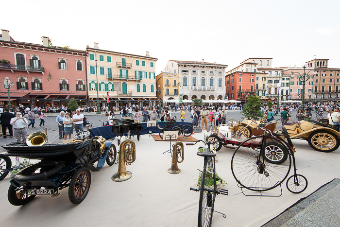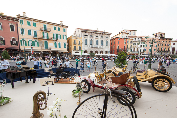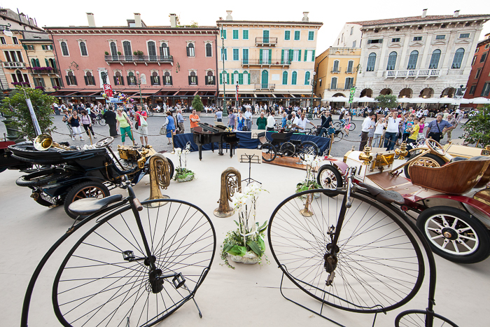 Eccezionalmente in Piazza Bra, come succedeva 100 anni fa in occasione dell’Opera, si potranno ammirare vetture e bicicli rarissimi come la “Ansaldo PF –1 VA” del 1906, la “Peugeot Tipo 58” del 1904, la prima del suo genere a circolare in Italia, la “Lancia Beta 20 HP” del 1911, con doppio acceleratore al volante e serbatoio da 100 litri sistemato posteriormente. Ancora, l’americana “Oldsmobile Model R Curved dash” del 1903, prima vettura al mondo prodotta in grande serie dalla casa americana e il Biciclo “Rudge” del 1878, famoso modello con la ruota anteriore di grandi dimensioni.
