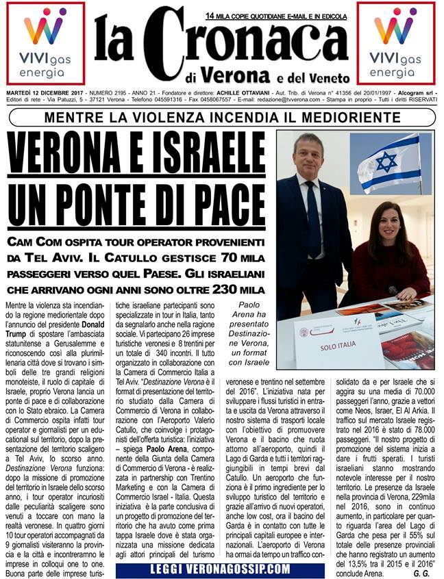 “E’ sempre un grande piacere per noi ospitare eventi internazionali che confermano l’interesse turistico e culturale del nostro territorio” dice Silvia Nicolis “questa iniziativa è la parte conclusiva di un grande progetto di promozione coordinato da Camera di Commercio Verona in collaborazione l’Aeroporto Valerio Catullo e Trentino Marketing“.
