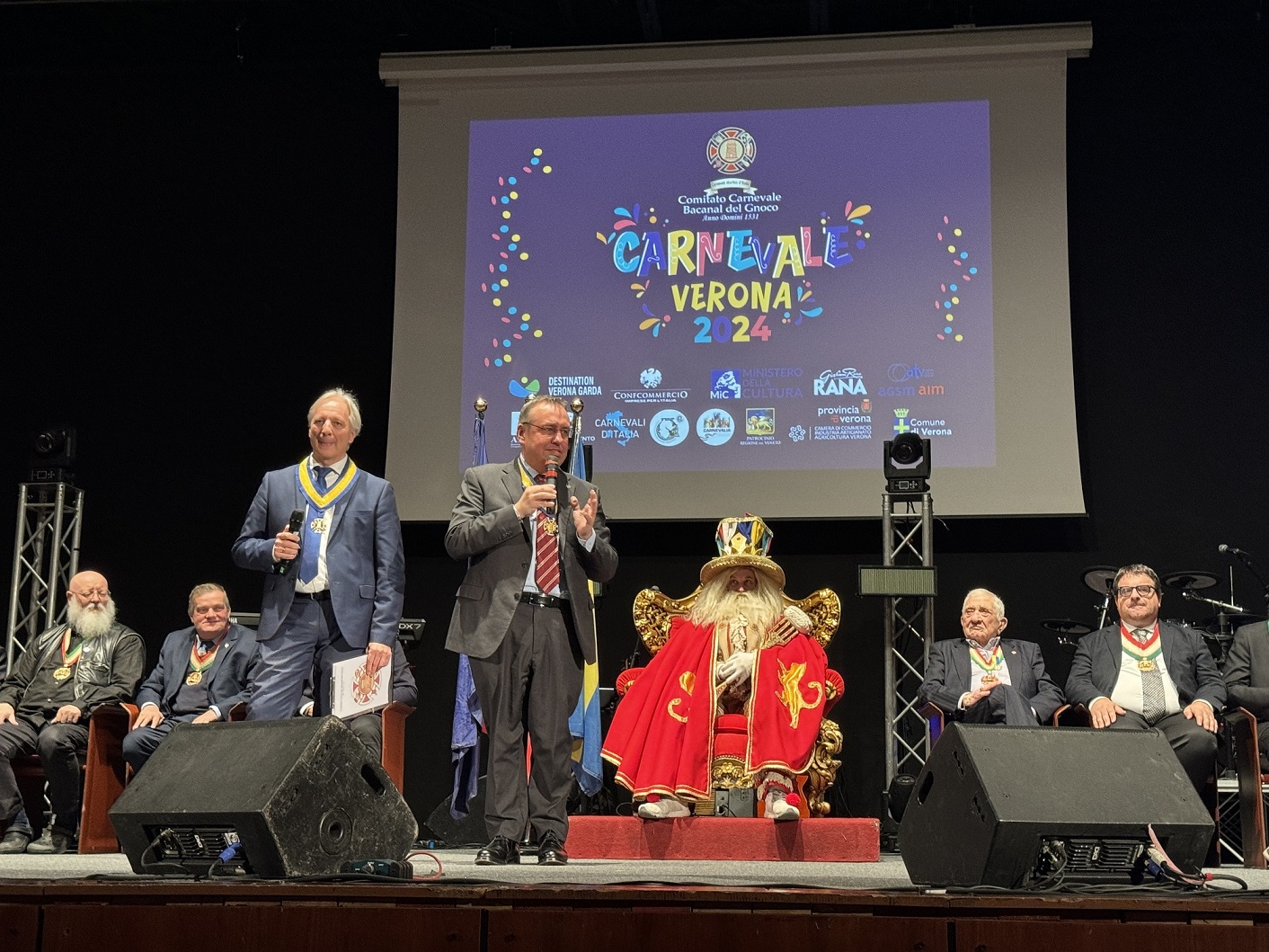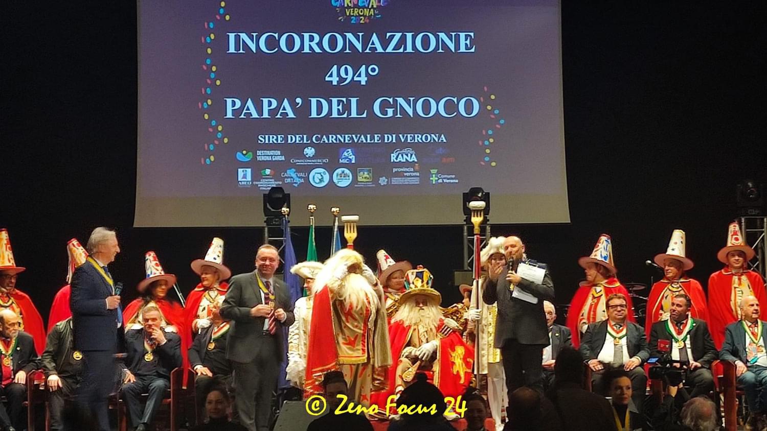Il 23 gennaio è stato incoronato il 494° Papà del Gnoco al Palazzo della Gran Guardia - Paolo Fabrello -. Si tratta di un nome caro al Carnevale di Verona, perché ha già impugnato la forchetta dorata otto anni fa, nel 2016.