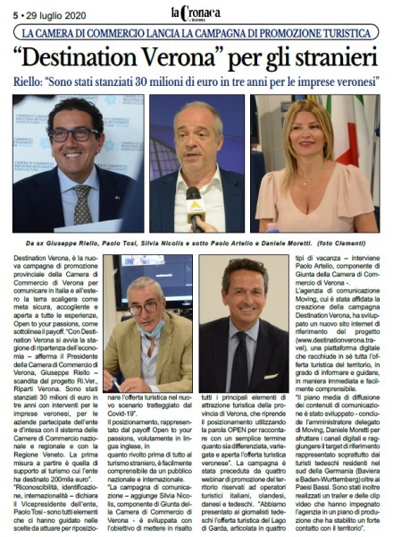 Destination Verona, è la nuova campagna di promozione provinciale della Camera di Commercio di Verona per comunicare in Italia e all’estero la terra scaligera come meta sicura, accogliente e aperta a tutte le esperienze, Open to your passions, come sottolinea il payoff.