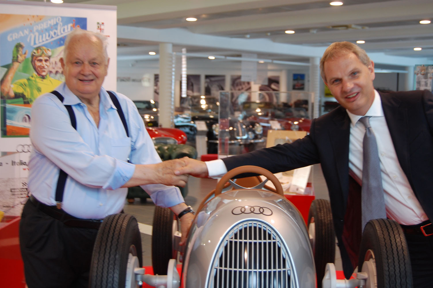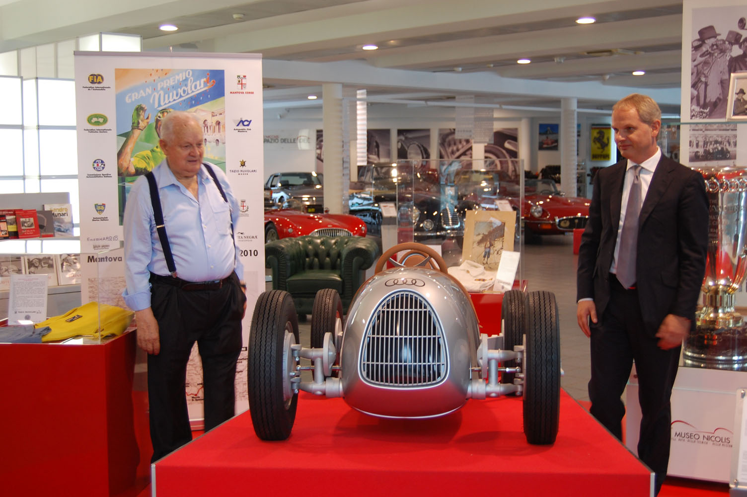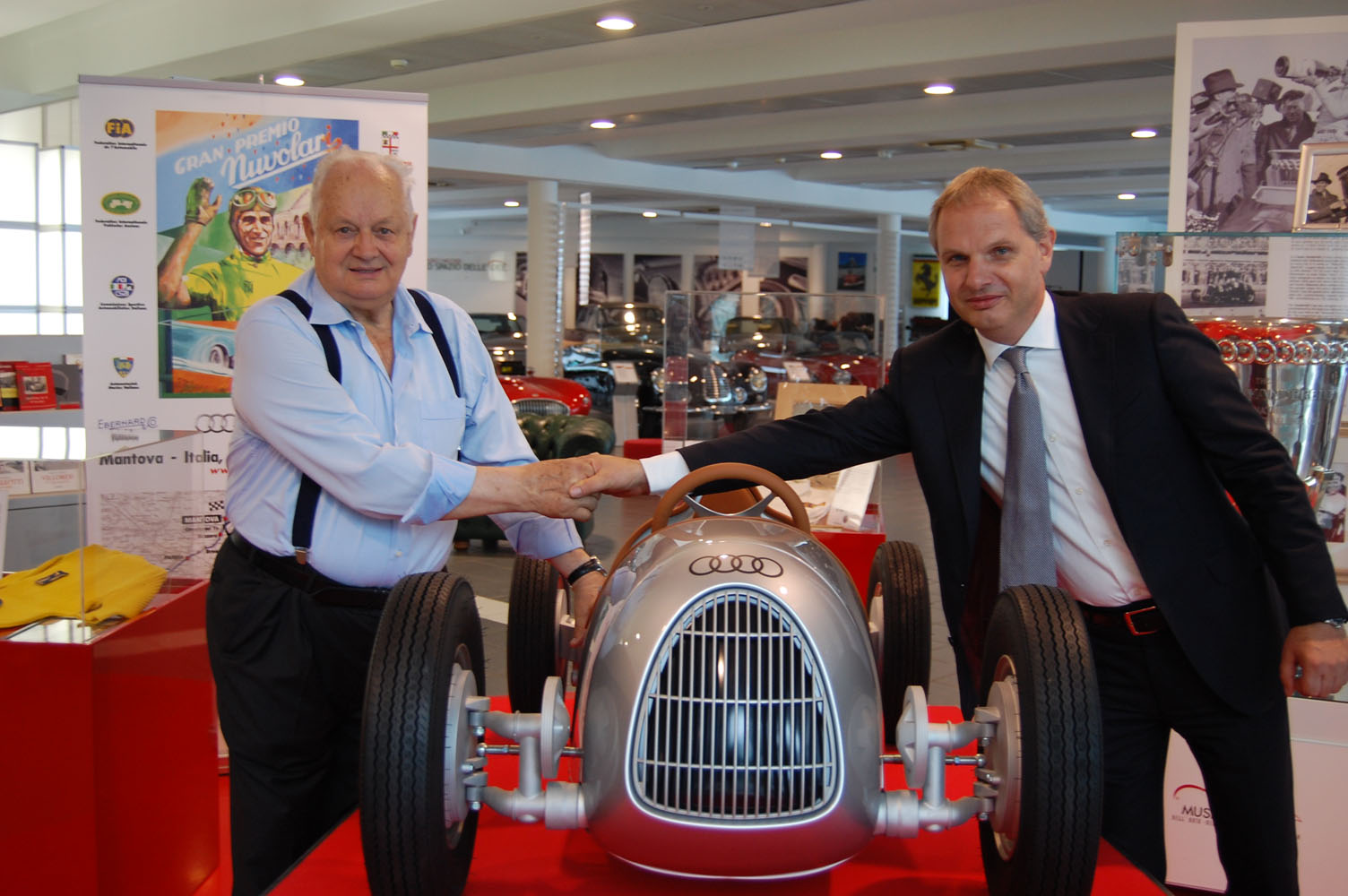 Il modello che affidiamo oggi alla sapiente custodia del Nicolis ha segnato in modo importante la storia del nostro Marchio e della nostra Azienda. Auto Union, infatti, è stata protagonista della stagione d’oro dell’automobilismo sportivo e tanti piloti della nostra scuderia hanno trionfato al volante delle Silver Arrows”.