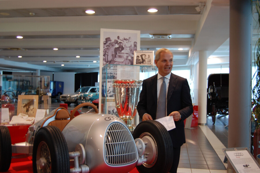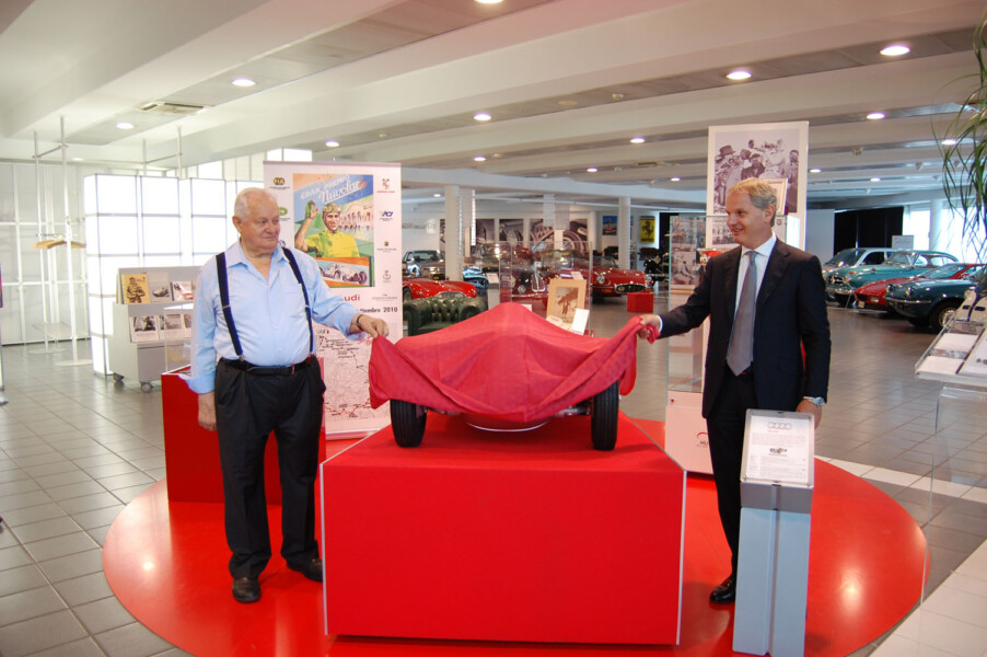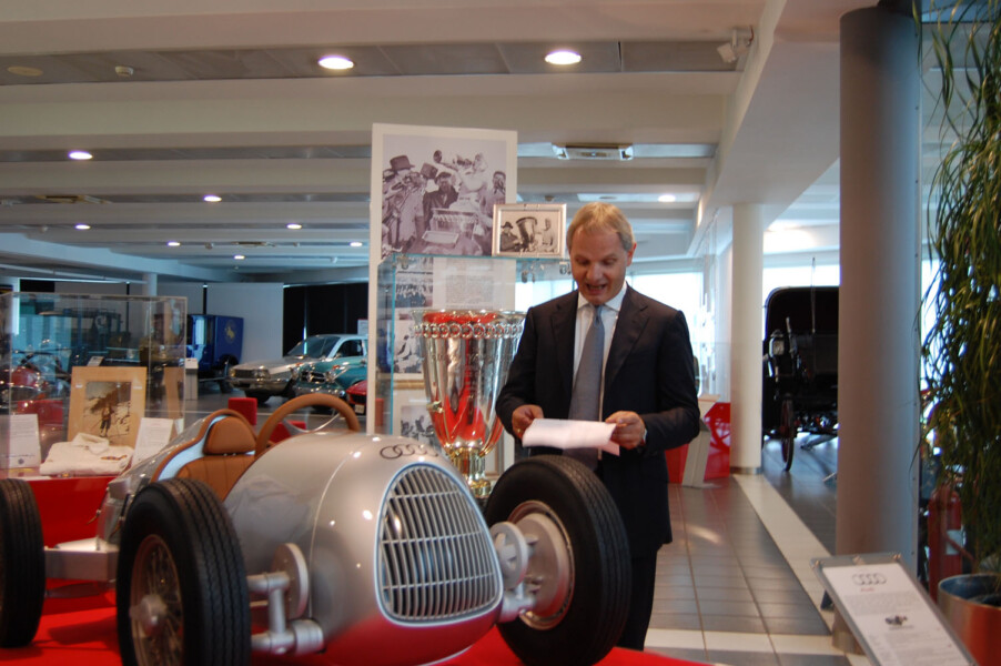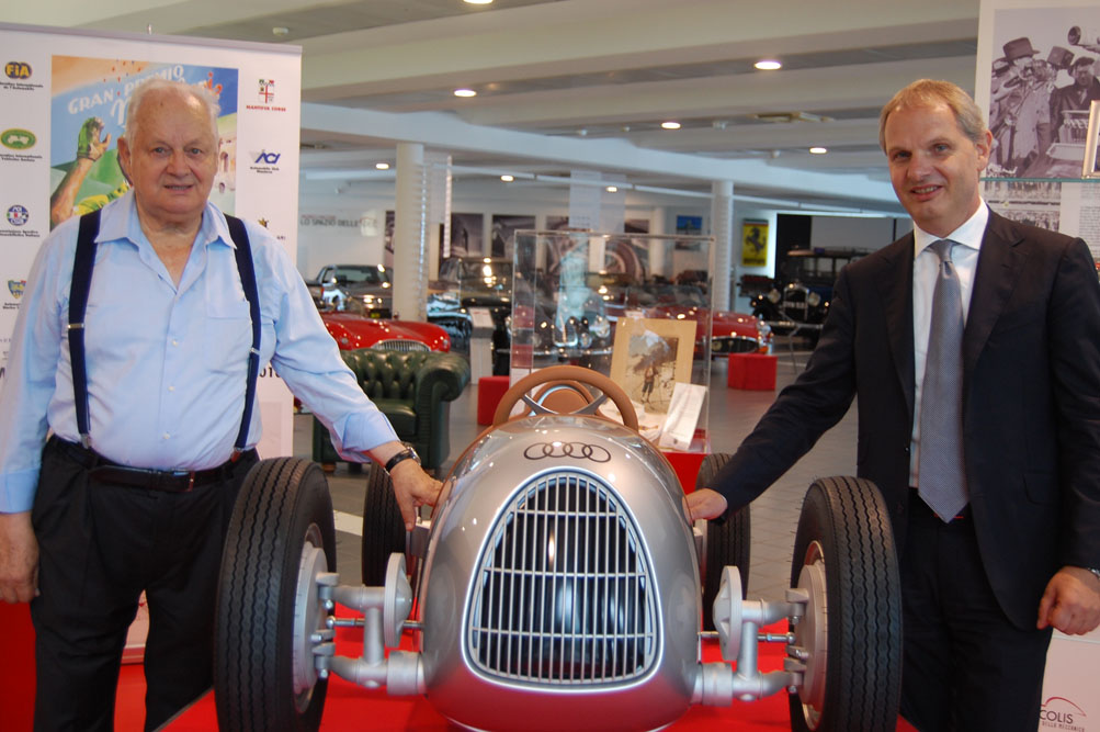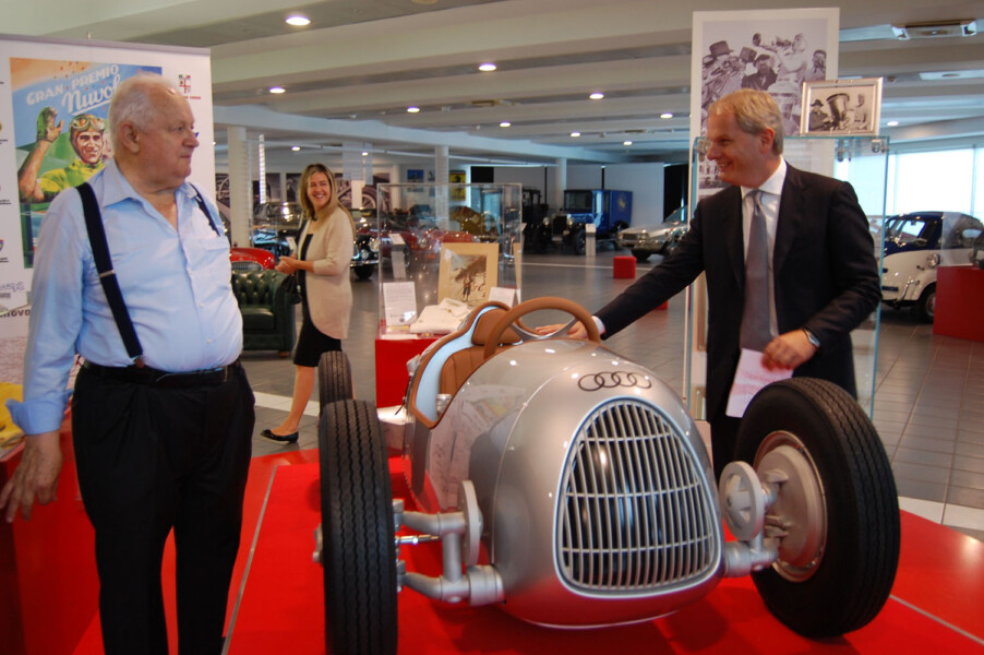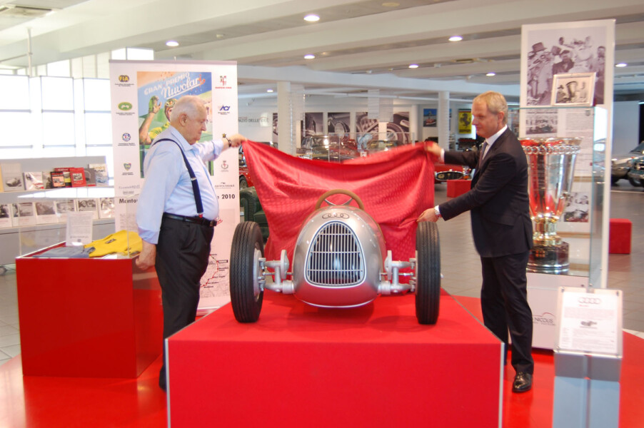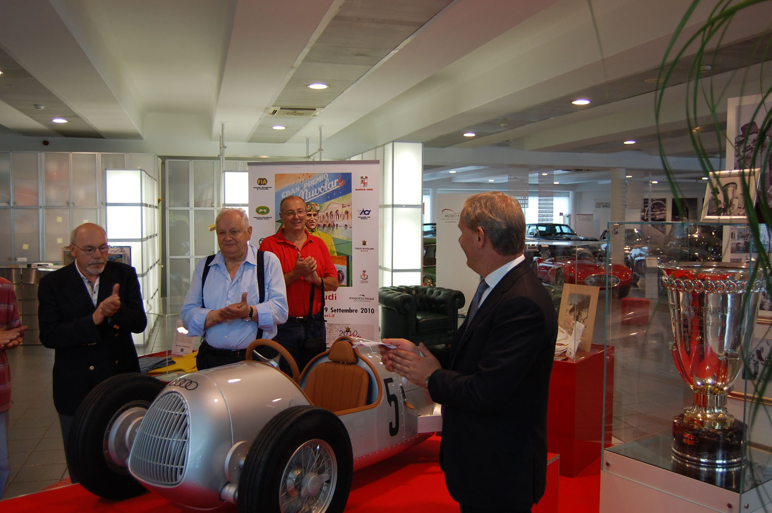 Il modello che affidiamo oggi alla sapiente custodia del Nicolis ha segnato in modo importante la storia del nostro Marchio e della nostra Azienda. Auto Union, infatti, è stata protagonista della stagione d’oro dell’automobilismo sportivo e tanti piloti della nostra scuderia hanno trionfato al volante delle Silver Arrows”.
