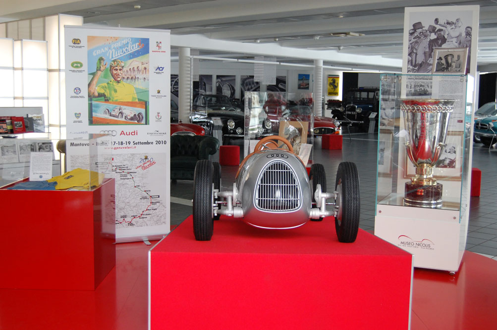 Per festeggiare l’arrivo della Auto Union Tipo C e celebrare degnamente la grandezza di Nuvolari e della sua stagione sportiva, il Nicolis ha collocato la piccola vettura Audi proprio all’ingresso del Museo, in un’area dove si possono ammirare numerosi cimeli del campione. A fianco della vettura scintilla infatti la Coppa Vanderbilt, un calice in argento massiccio di quasi 70 kg per 70 cm di altezza che il miliardario George Vanderbilt commissionò nel 1936 alla Maison Cartier e che Nuvolari si aggiudicò proprio quell’anno, dopo una spettacolare gara di 300 miglia disputata sulla Roosevelt Raceway, nello stato di New York.