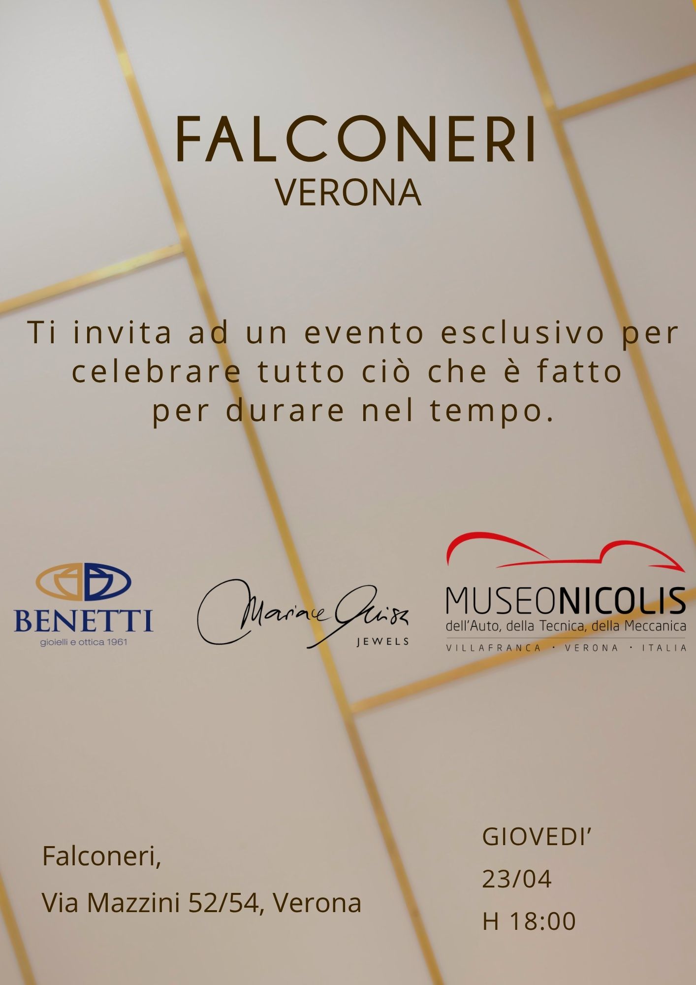 Il Museo Nicolis è stato protagonista di un evento esclusivo nella boutique Falconeri in Via Mazzini, nel cuore di Verona, insieme a realtà che condividono la stessa visione di bellezza e qualità: Gioielleria Benetti e Maria e Luisa Jewels.