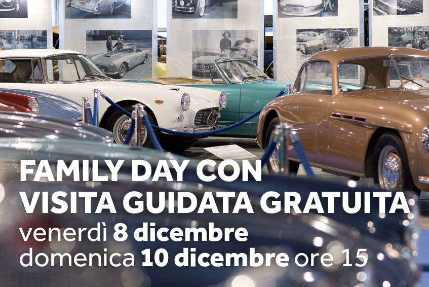 Si parte venerdì 8 dicembre, giorno dell’Immacolata, con uno speciale Family Day: apertura straordinaria dalle 10 alle 18 con l’imperdibile VISITA GUIDATA GRATUITA alle ore 15, su prenotazione. Ma non è tutto! Bambini e ragazzi fino ai 18 anni usufruiranno dell’ingresso OMAGGIO, mentre per gli adulti ingresso ridotto (euro 12 anziché euro 14). Un tuffo emozionante nel passato tra auto da sogno e meravigliosi oggetti d’epoca; un’opportunità unica per trascorrere una giornata in famiglia o con amici all’insegna del divertimento.