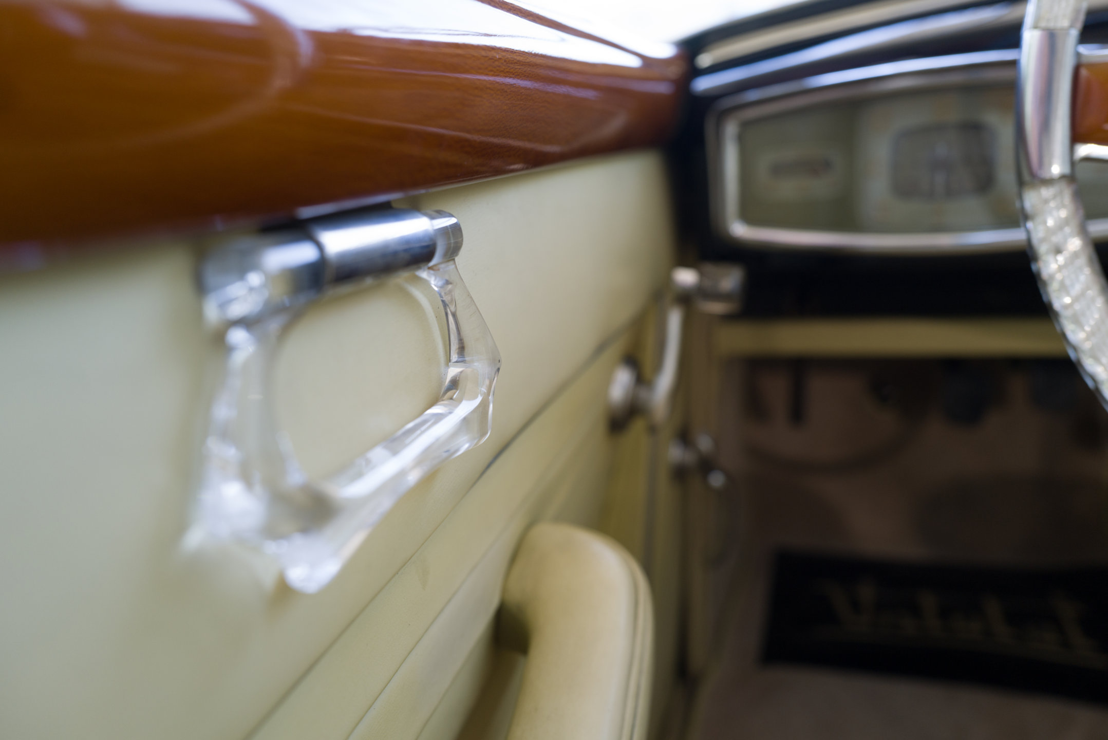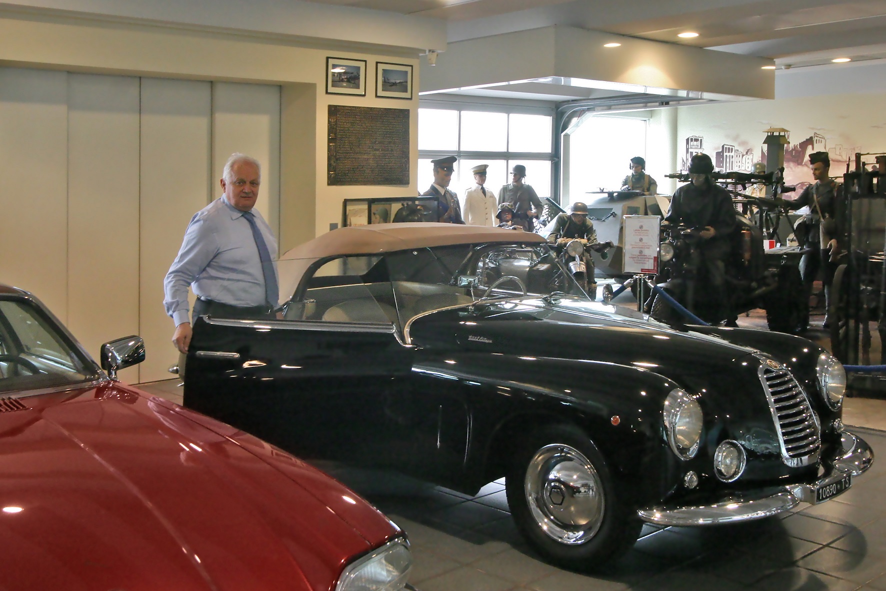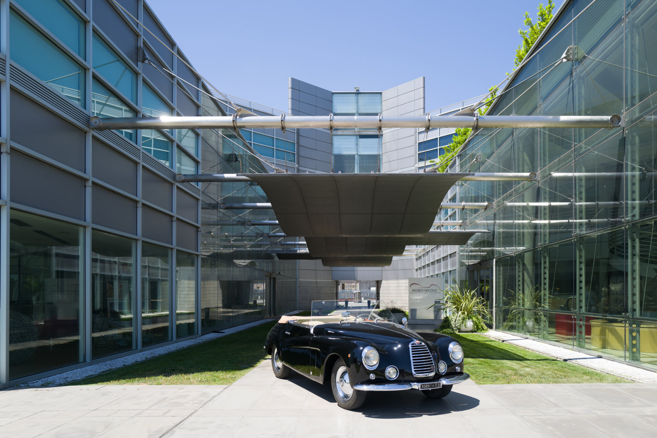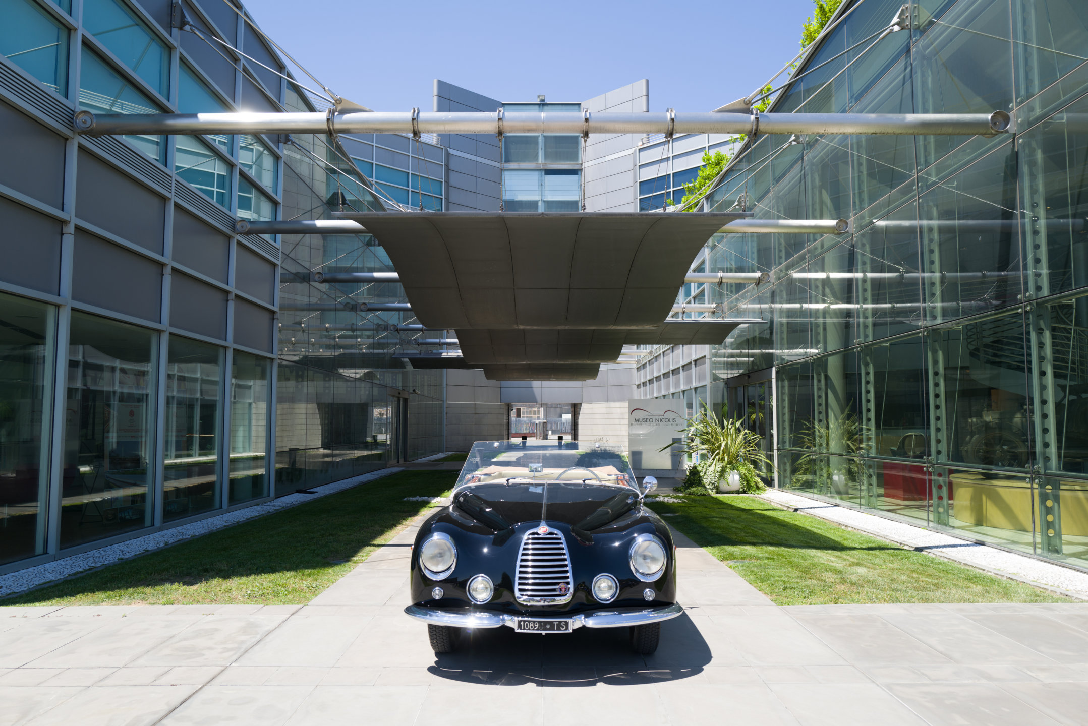 La vettura esposta è un esemplare molto raro realizzato dalla Carrozzeria Castagna di Milano che negli anni a cavallo fra le due guerre si era imposta in tutto il mondo con le sue eleganti carrozzerie costruite su telai prestigiosi, come quella che veste l’Isotta Fraschini Tipo 8AS del Museo Nicolis. Il cabriolet “Vistotal” deve il suo nome al particolare parabrezza senza montanti, che permette una visibilità totale della strada attraverso l'impiego di vetro temperato di largo spessore che è parte integrante della struttura. Sperimentato dal carrozziere parigino Jean Henri-Labourdette nel 1935, fu denominato "Vutotal" quale sincrasi di "vue totale". Questa raffinata Fiat 1100 è una delle ultime creazioni della carrozzeria Castagna e si distingue per la ricercatezza dei suoi dettagli. In sintonia con il parabrezza è anche il volante trasparente, un’opera d’arte vista solo su vetture di maggiore importanza. La Vistotal del Nicolis circola ancora con il suo Libretto originale e risulta essere passata tra le mani dello stesso Ercole Castagna. Nel nostro centro documentazione è conservata una pubblicità dell’epoca (rivista Motor Italia del 1949) con dedica di Gabriele D’Annunzio “A Ercole Castagna che magnificamente dà eleganza alla Velocità”.