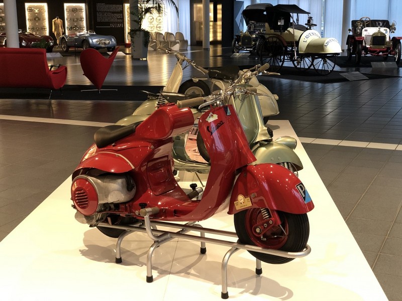 Ancora per poco in esposizione i rarissimi scooter Vespa che hanno avuto maggior rilievo nella società e nel cuore degli appassionati: la Vespa 98 del 1946 l’inizio della fantastica avventura che ricorda Enrico Piaggio e Corradino D’Ascanio, le Sport “6 giorni” del 1952 e del 1953 delle memorabili imprese sportive, la 125 del 1952 modello interprete del film di William Wyler “Vacanze Romane” con Audrey Hepburn e Gregory Peck, e tanti altri memorabili pezzi che rappresentano un percorso entusiasmante sino agli anni ’70.