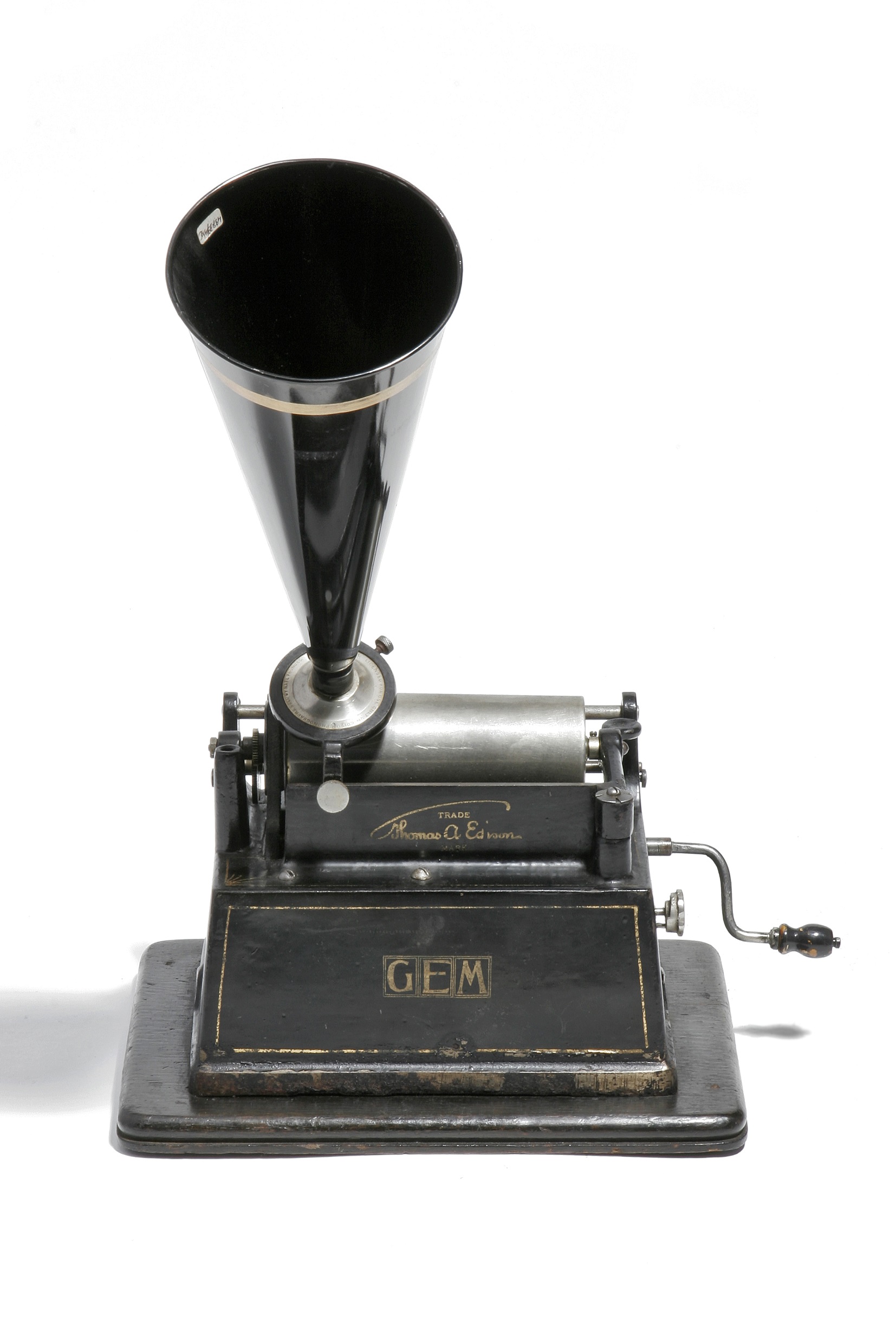 Alla testina viene applicata una tromba metallica, laccata di nero con filettatura dorata, che amplifica il suono riprodotto. Il fonografo Edison Gem fu introdotto nel febbraio del 1899 e venne prodotto in diverse versioni: tra il 1904 e il 1913 si susseguirono cinque modelli, dal modello A al modello E. Esposto al Museo Nicolis, questo strumento rappresenta una tappa fondamentale nella storia della riproduzione sonora domestica.